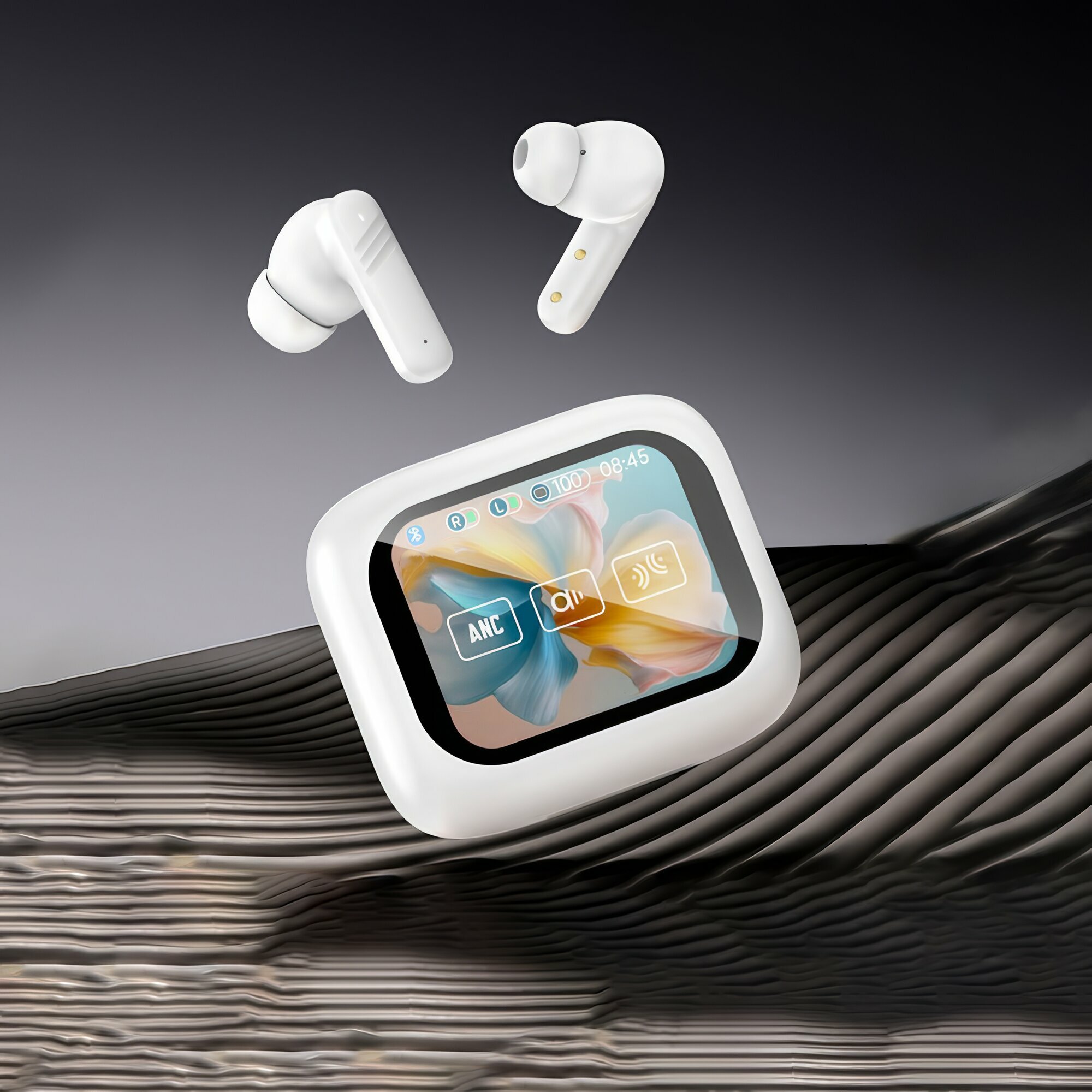 Беспроводные TWS внутриканальные наушники с сенсорным дисплеем TECH LX-10 ANC+ENC, белый интересное: