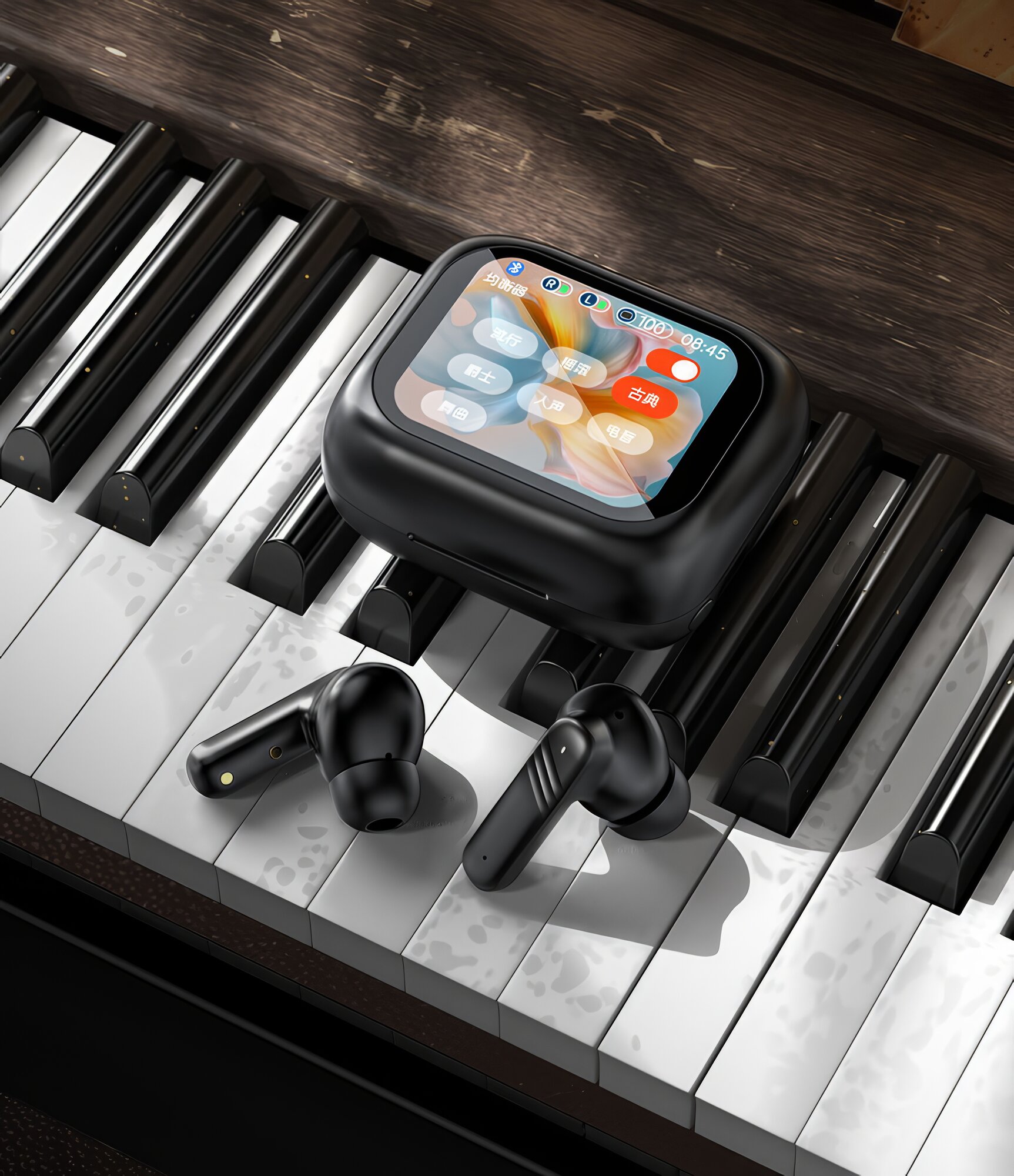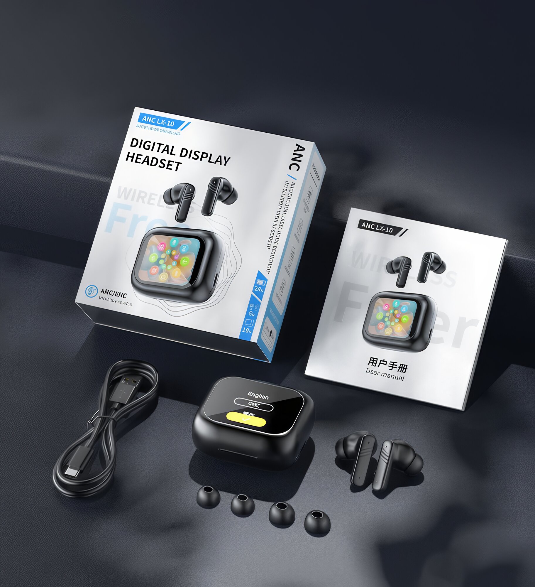 Беспроводные TWS внутриканальные наушники с сенсорным дисплеем TECH LX-10 ANC+ENC, черный
