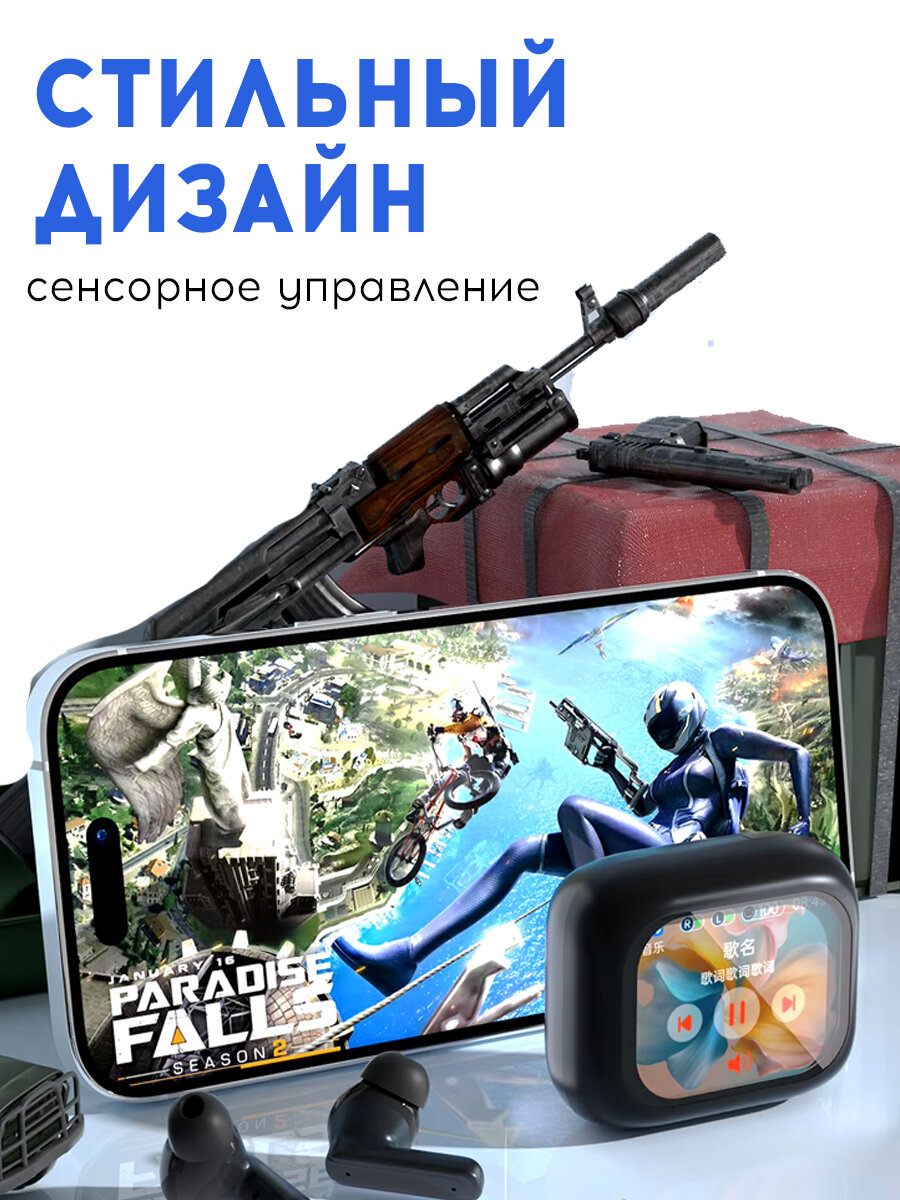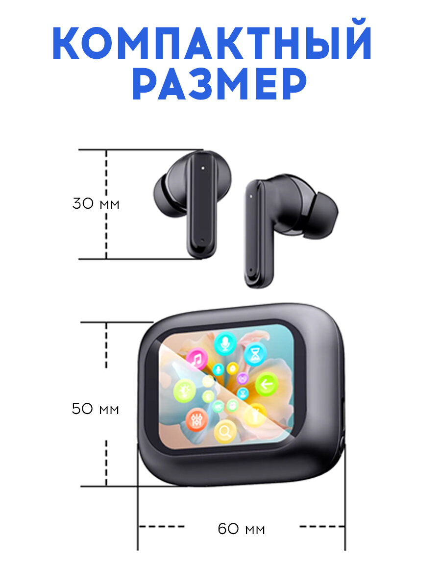 Беспроводные наушники Bluetooth с сенсорным дисплеем, блютуз наушники для телефона, с шумуоподавлением, черные интересное: