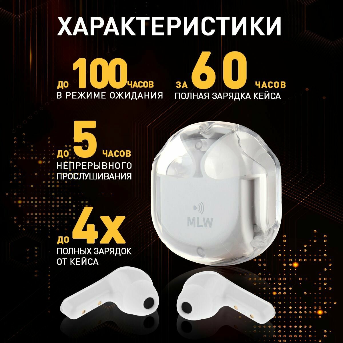 Беспроводные наушники Premium Miland с шумоподавлением и защитой от влаги. Совместим со всеми устройствами. Белый интересное: