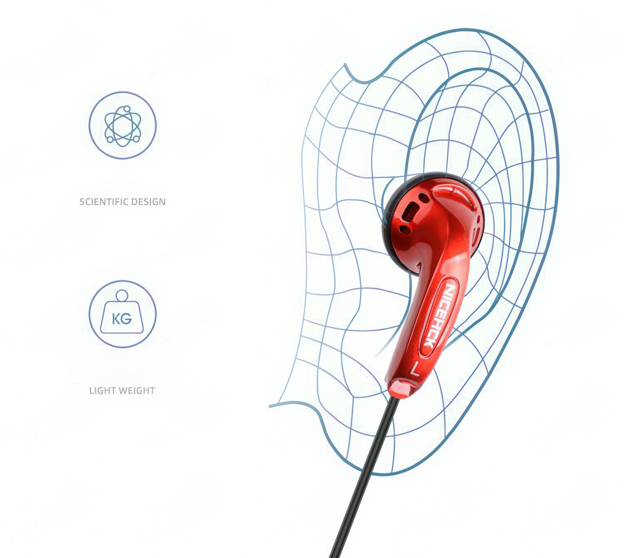 Проводные наушники вкладыши NiceHCK MX500, mini jack 3.5, красный, синий
