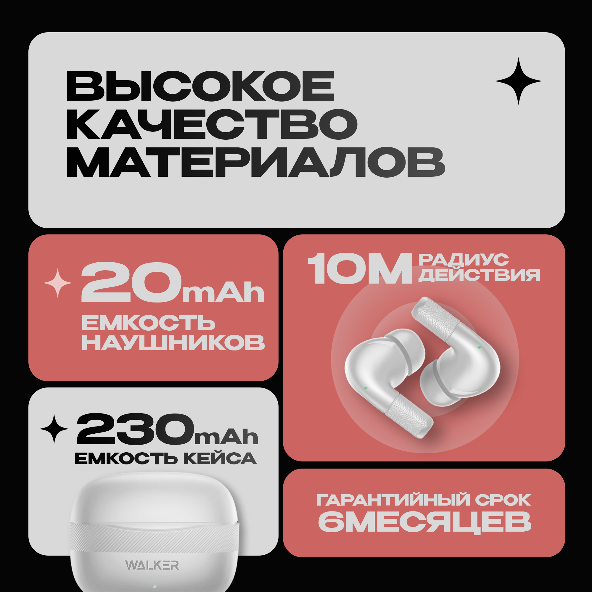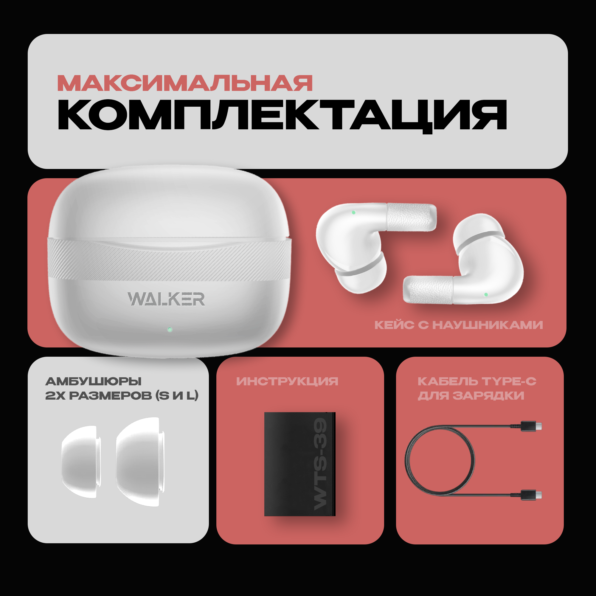 Наушники беспроводные для телефона, WALKER WTS-39, сенсорное управление, с микрофоном, игровые, как sony, jbl, белые интересное: