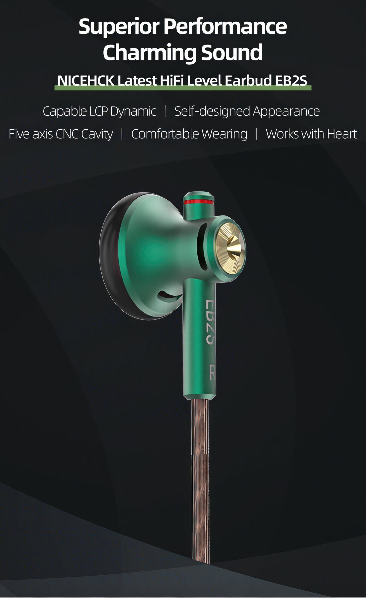 Проводные наушники вкладыши NiceHCK EB2S, jack 4.4 mm, 1DD, 15.4 mm, зеленый