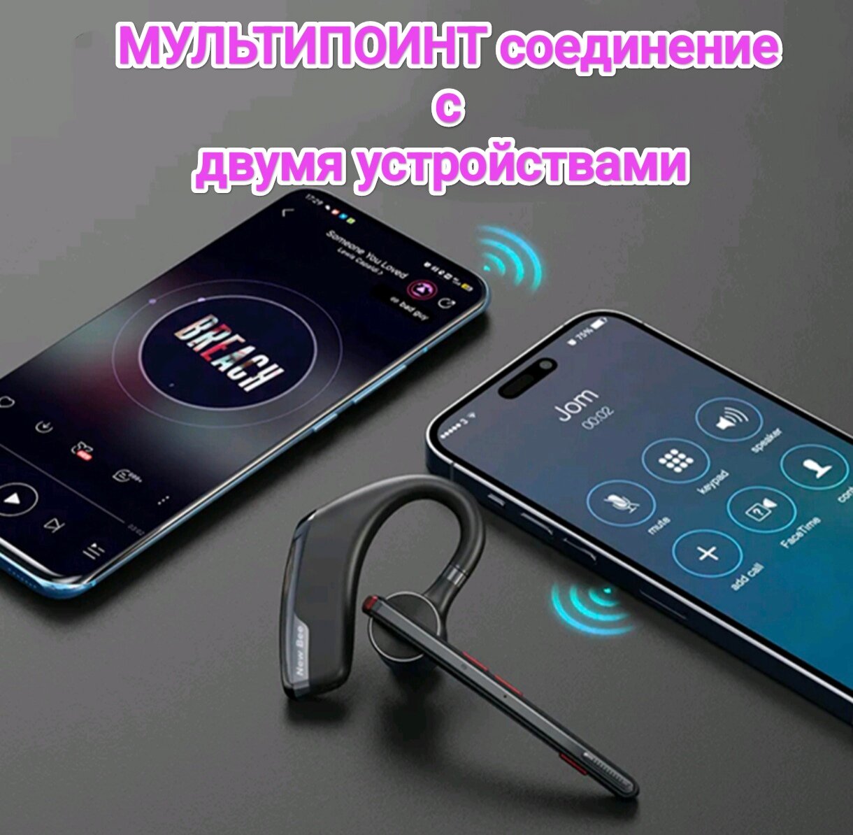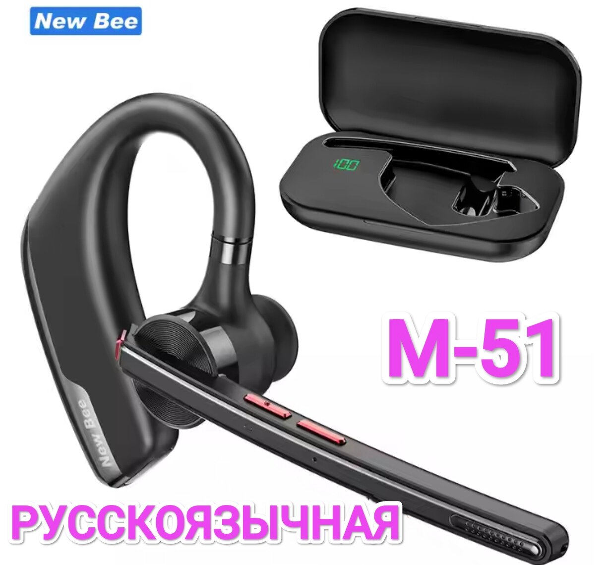 Bluetooth-гарнитура "New Bee" М-51RUS с зарядным футляром русскоязычная интересное: