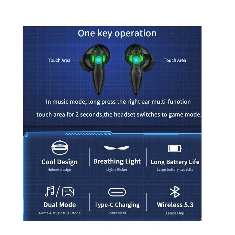 Наушники беспроводные игровые Recci Helmet Pubg Artifact TWS Earbuds, BT5.3, 300mAh/30mAh, Черный