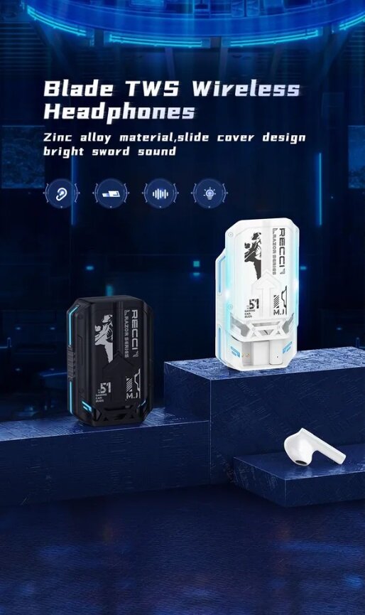Купить Наушники беспроводные Recci Razor Wireless Earbuds, BT5.3, 500 mAh/30 mAh, RGB, Черный, REP-W51