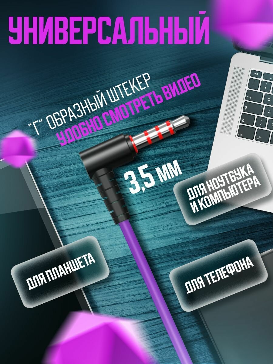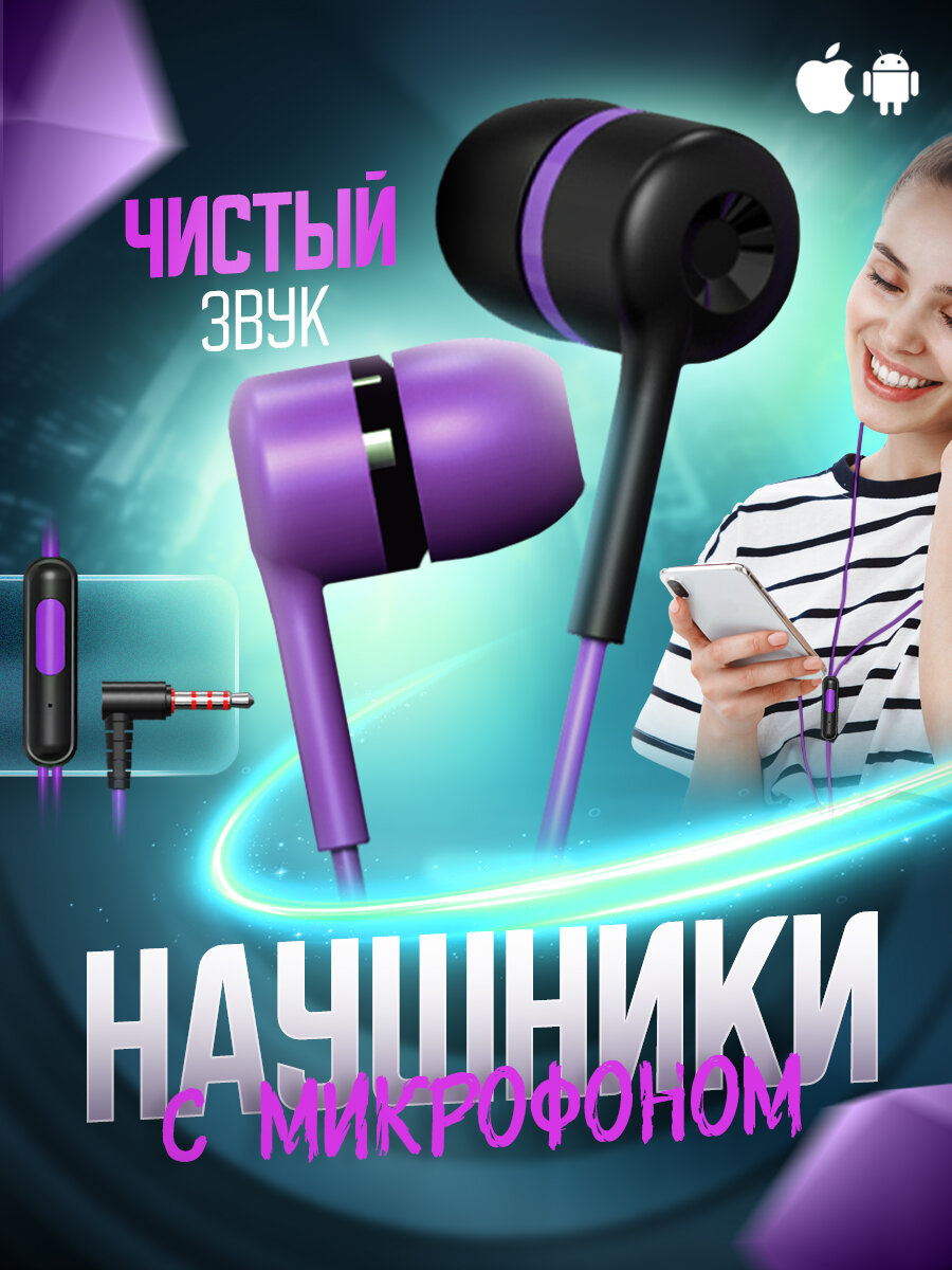 Купить Наушники проводные с микрофоном для телефона плеера ноутбука и планшета CRONAX C2, пластик, фиолетовый