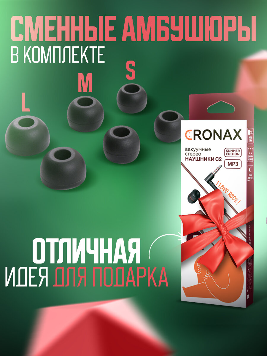 Наушники с микрофоном вакуумные CRONAX Premium B2, пластик, черный