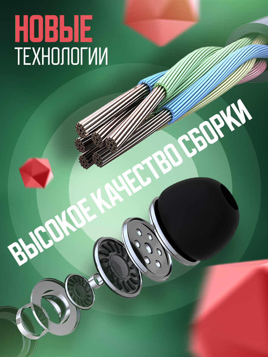 Наушники проводные для телефона, jack 3.5мм / Вкладыши с микрофоном, пластик, белые
