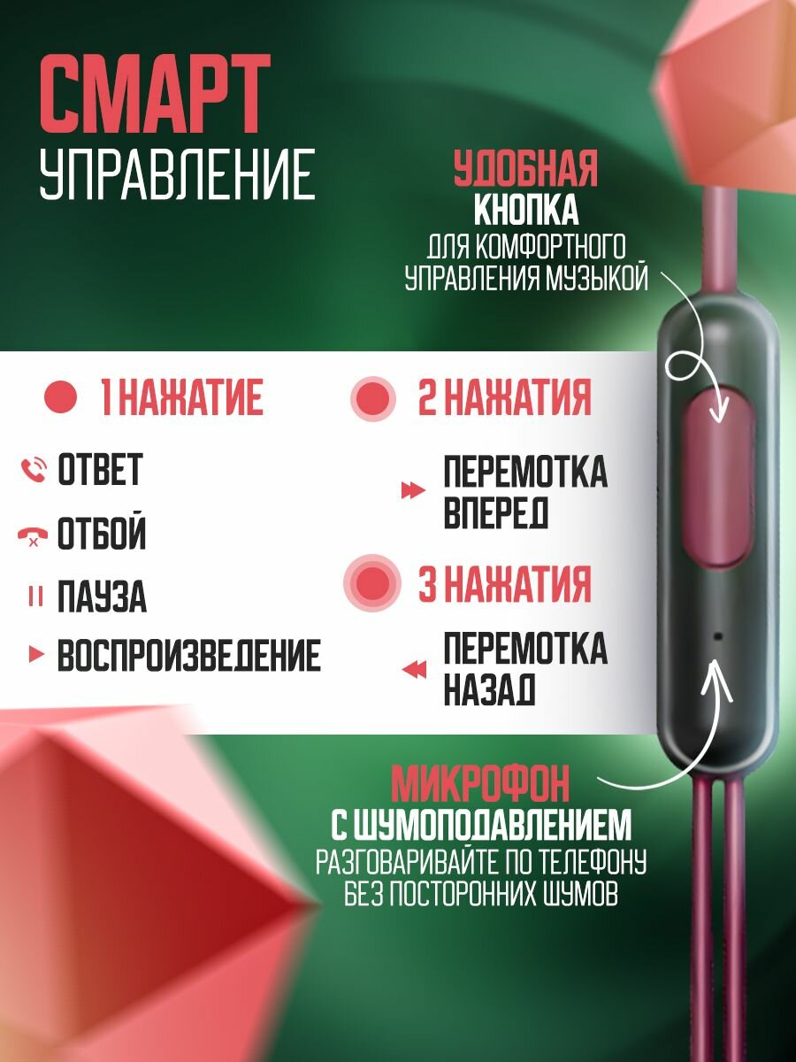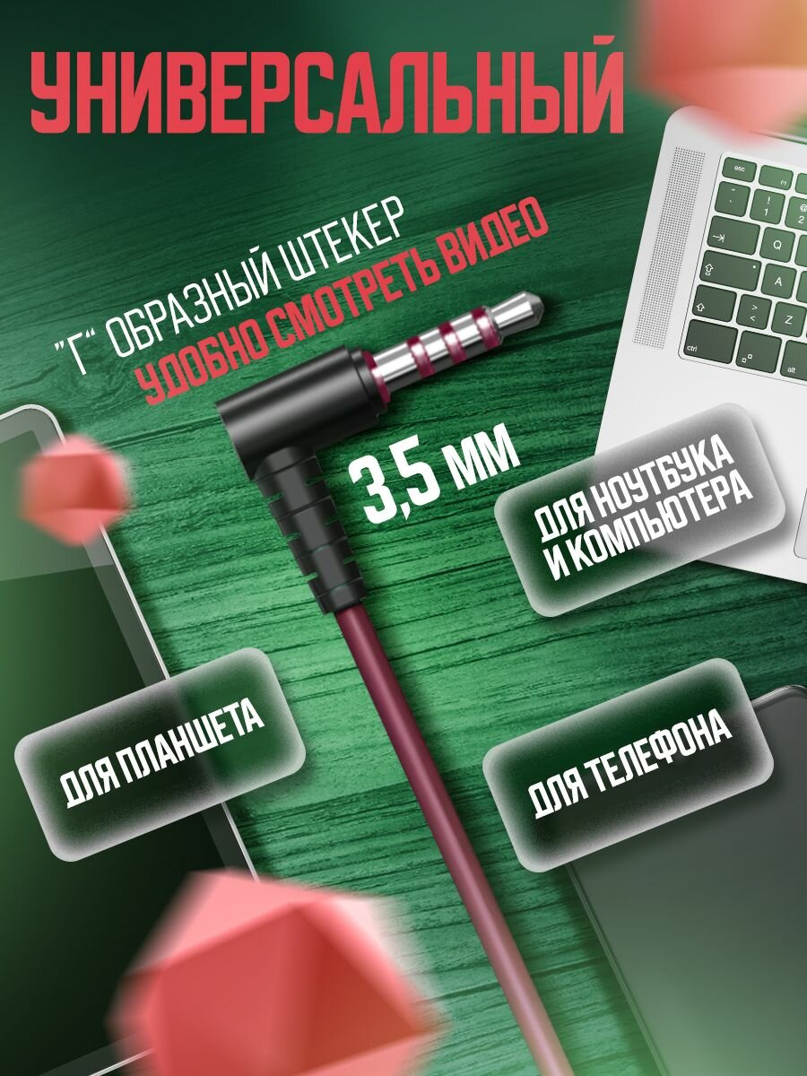 Купить Наушники проводные с микрофоном для телефона плеера ноутбука и планшета CRONAX C2, пластик, бордовый