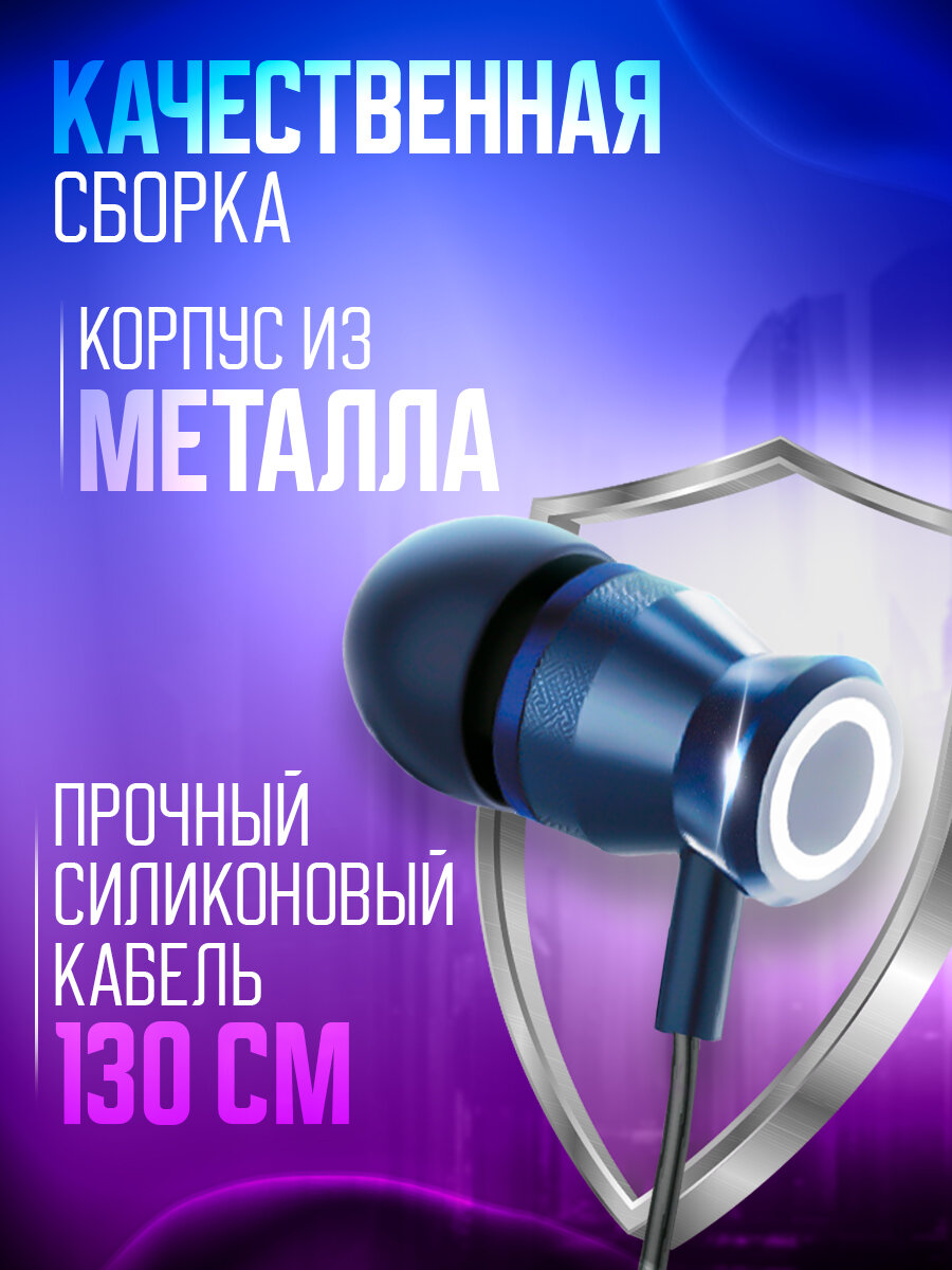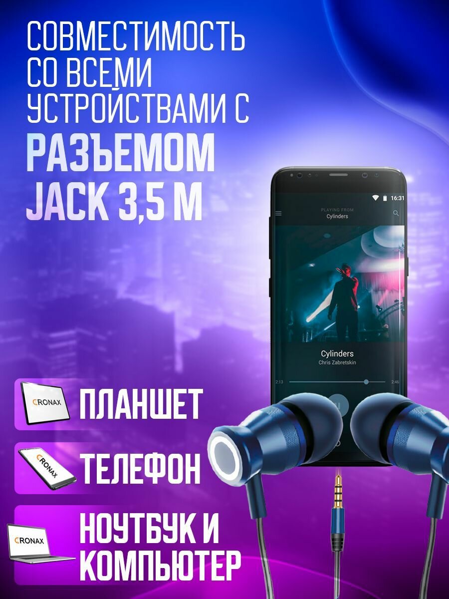Купить Наушники проводные для телефона с микрофоном CRONAX Metal Edition M4 / Гарнитура с разъемом Jack 3.5 mm, металл, синий