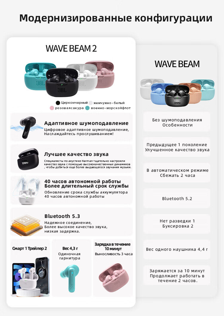Ниже Вы можете прочитать отзывы на JBL Наушники беспроводные с микрофоном JBL Wave Beam 2, Bluetooth, USB Type-C, черный, ознакомится с подробными характеристиками, посмотреть интересные обзоры и фотографии на JBL Наушники беспроводные с микрофоном JBL Wave Beam 2, Bluetooth, USB Type-C, черный.