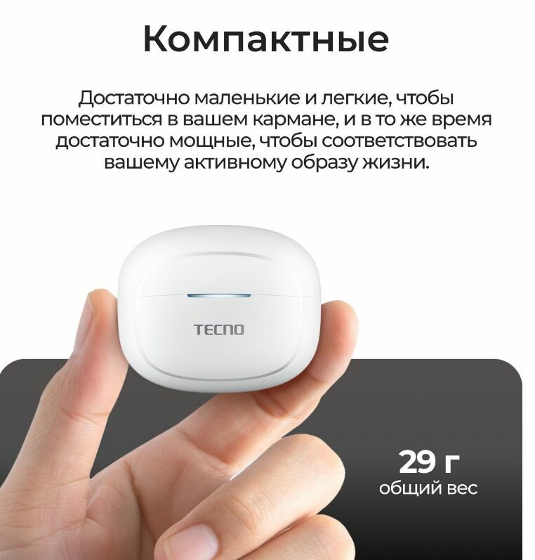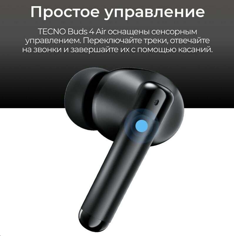 Tecno Наушники беспроводные с микрофоном Tecno Buds 4 Air, Bluetooth, USB Type-C интересное: