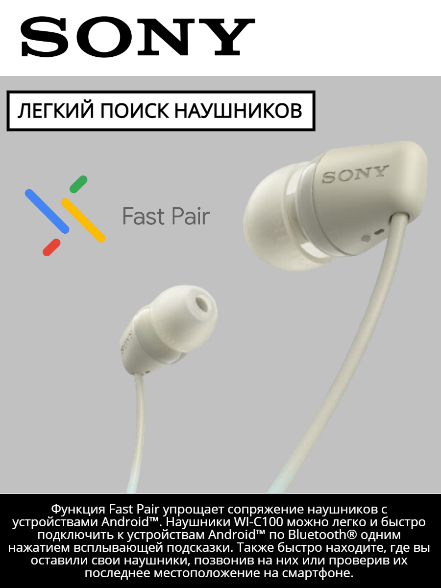 Беспроводные нашники / гарнитура SONY WI-C100, белый, кабель USB-C в подарок