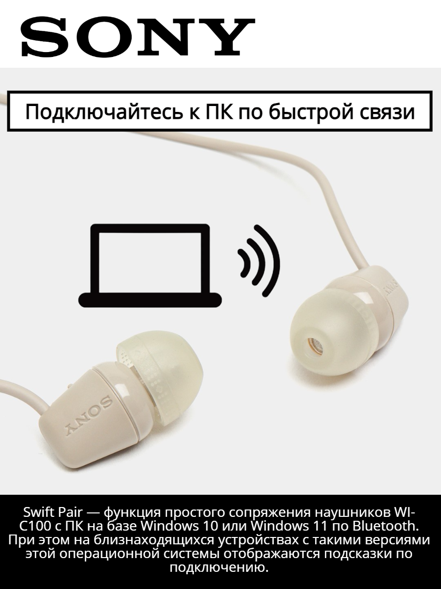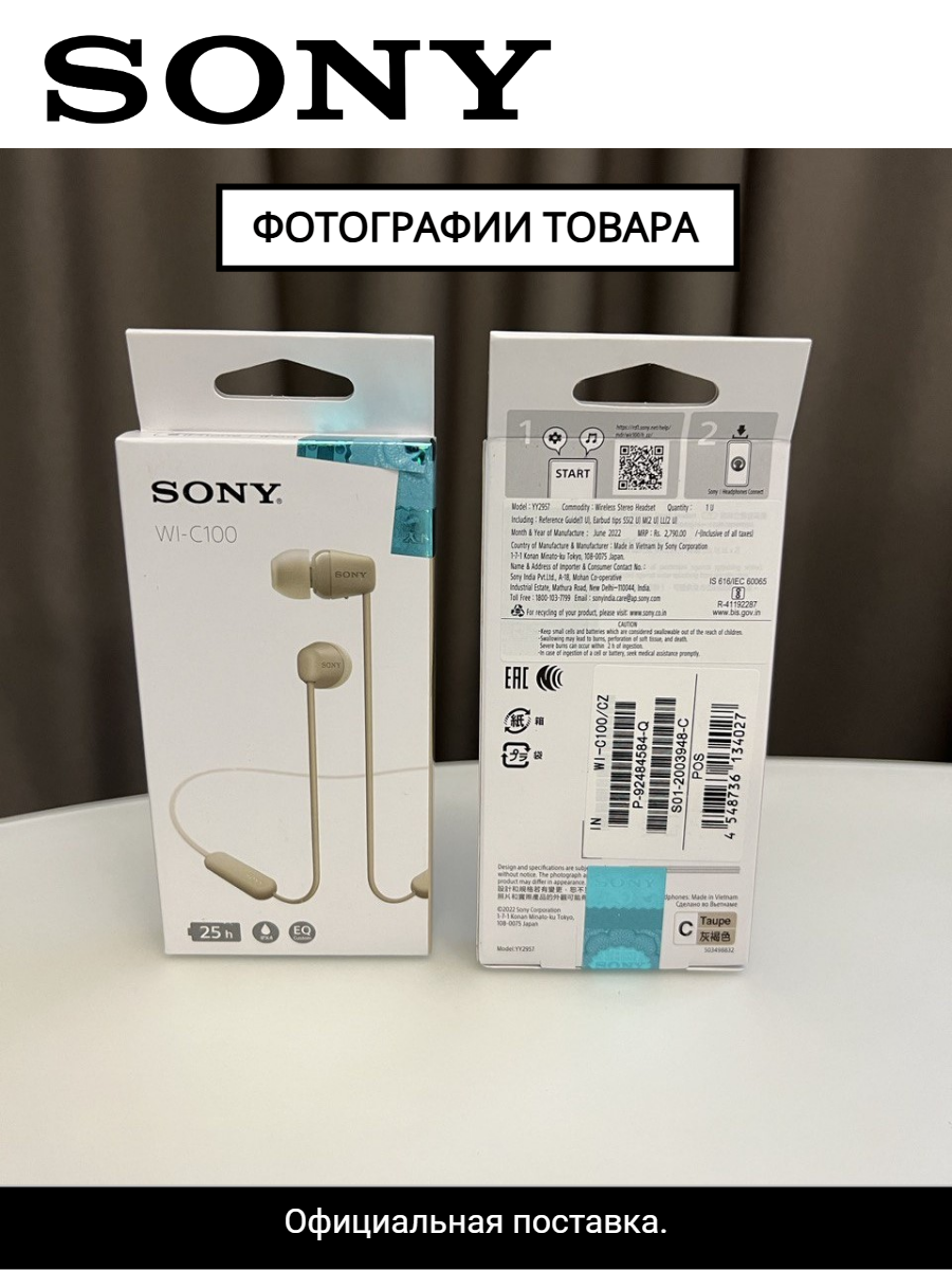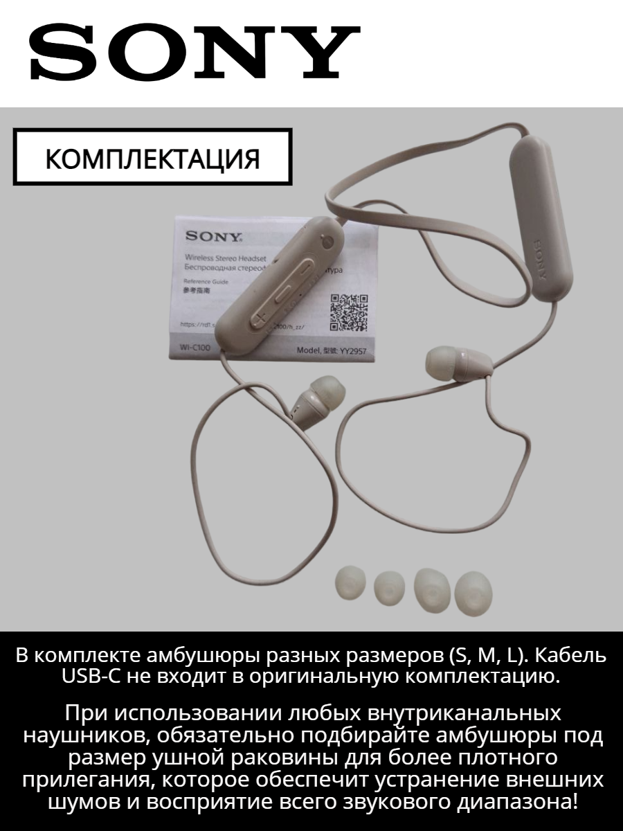 Беспроводные нашники / гарнитура SONY WI-C100, серо-коричневый, кабель USB-C в подарок интересное: