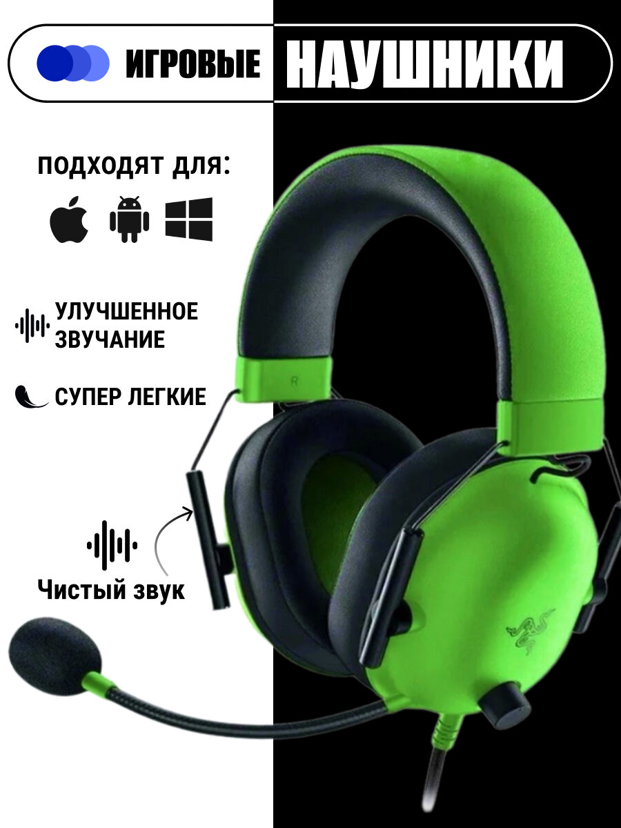 Игровая гарнитура для компьютера с микрофоном, проводные накладные/геймерские наушники, Гарнитура для ПК, зеленый интересное: