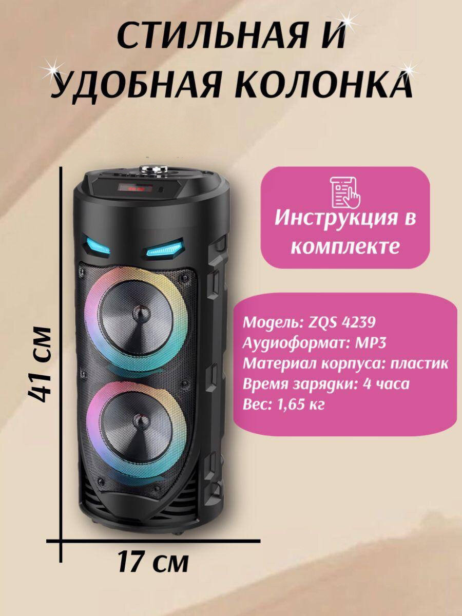 Портативная Bluetooth колонка ZQS-4239 с караоке и светомузыкой: мощный звук и стильный дизайн интересное: