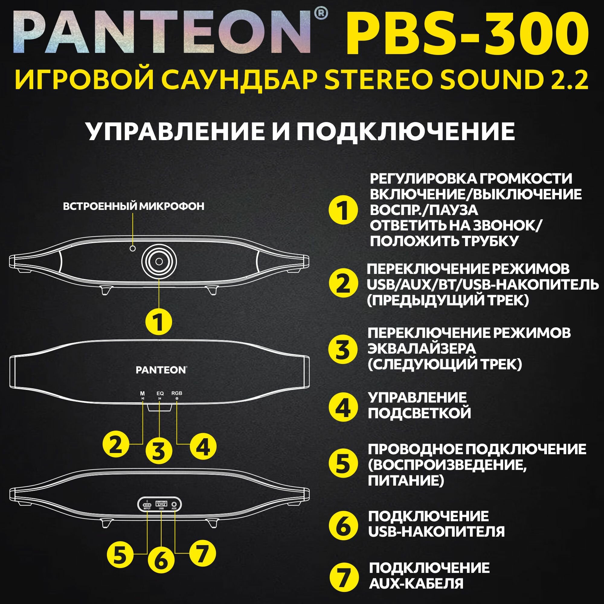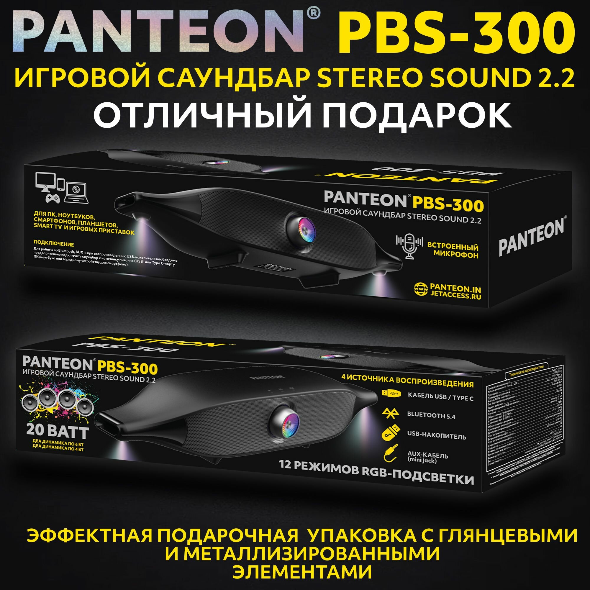 Саундбар игровой PANTEON "STEREO SOUND", 2.2, Bluetooth, RGB-подсветка, черный/серый интересное: