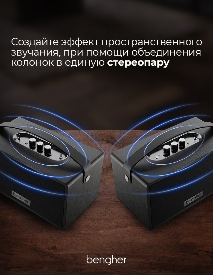 Портативная беспроводная bluetooth колонка Bengher Home Studio 2 100Вт USB TWS AUX интересное: