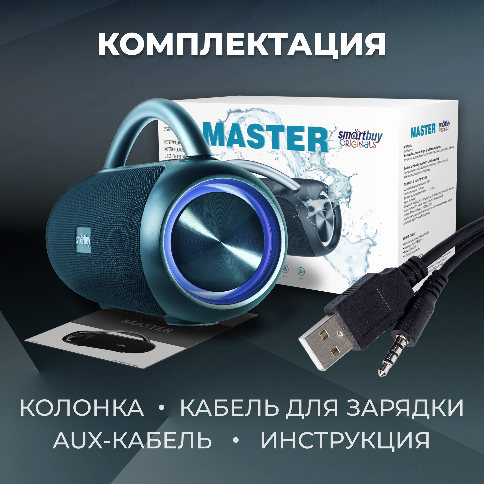Акустическая система 2.0 Smartbuy MASTER, 36Вт, Bluetooth, MP3, FM-радио, синяя интересное: