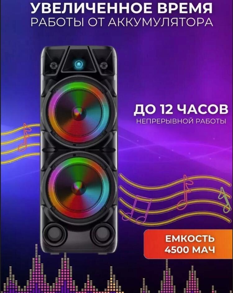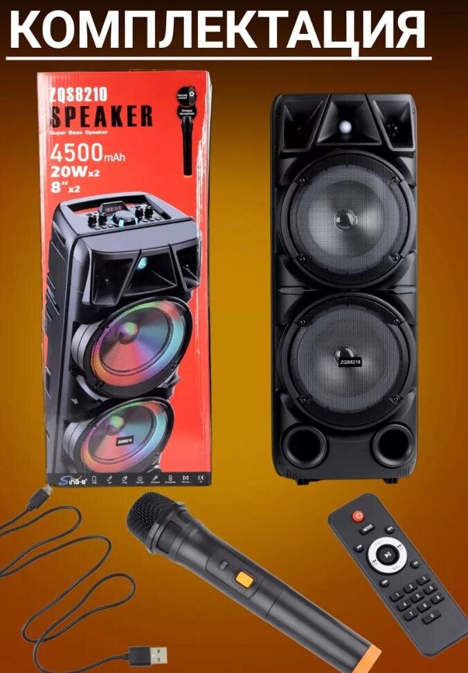 Купить Большая портативная колонка 8210 с пультом управления , караоке микрофон , светомузыка , для улицы