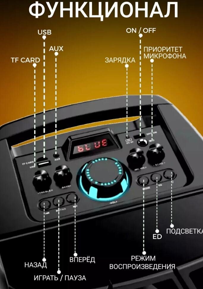 Большая портативная колонка 8210 с пультом управления , караоке микрофон , светомузыка , для улицы интересное:
