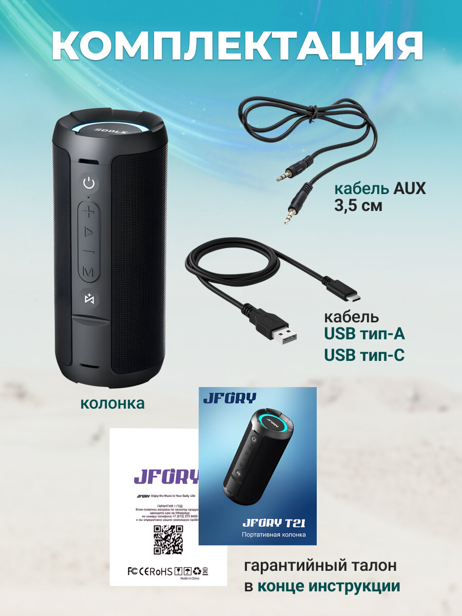 Портативная колонка JFORY 40 Вт водонепроницаемая музыкальная интересное: