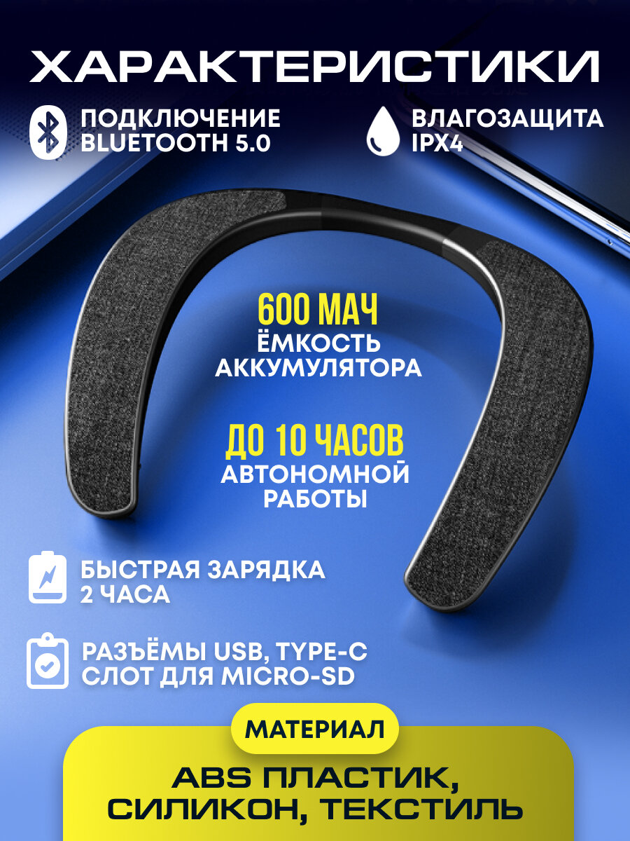 Наушники на шею спортивные с микрофоном, шейный беспроводной Bluetooth стерео динамик интересное:
