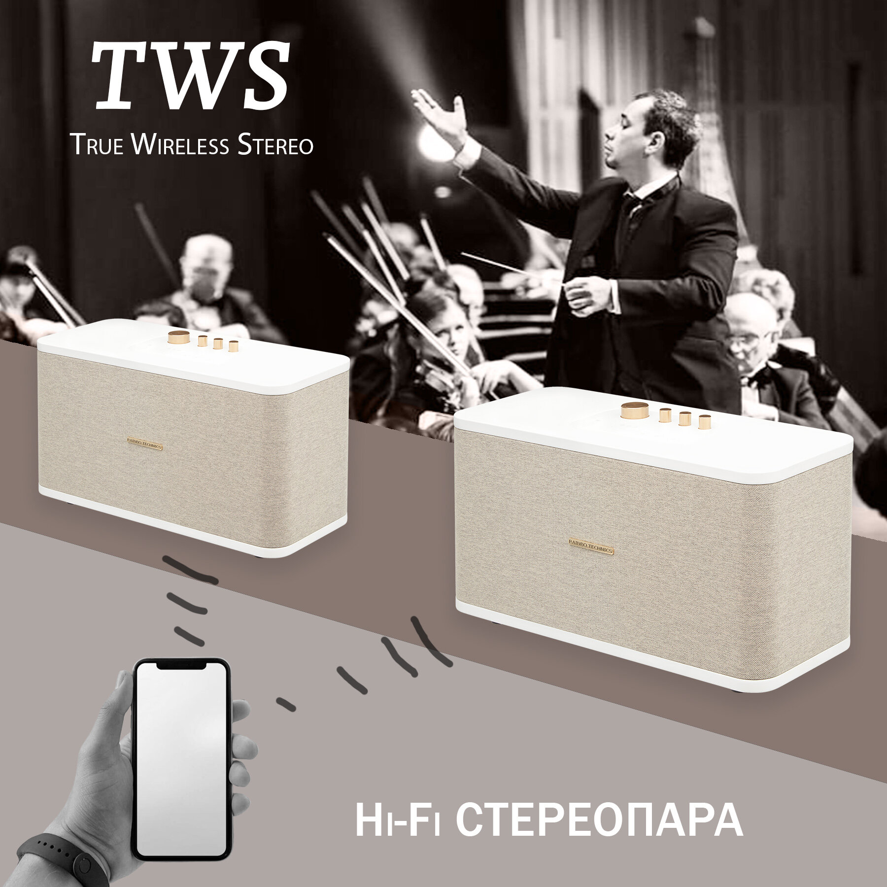 Hi-Fi блютуз колонка музыкальный центр RAINBO TECHNICS Satisfaction Brown