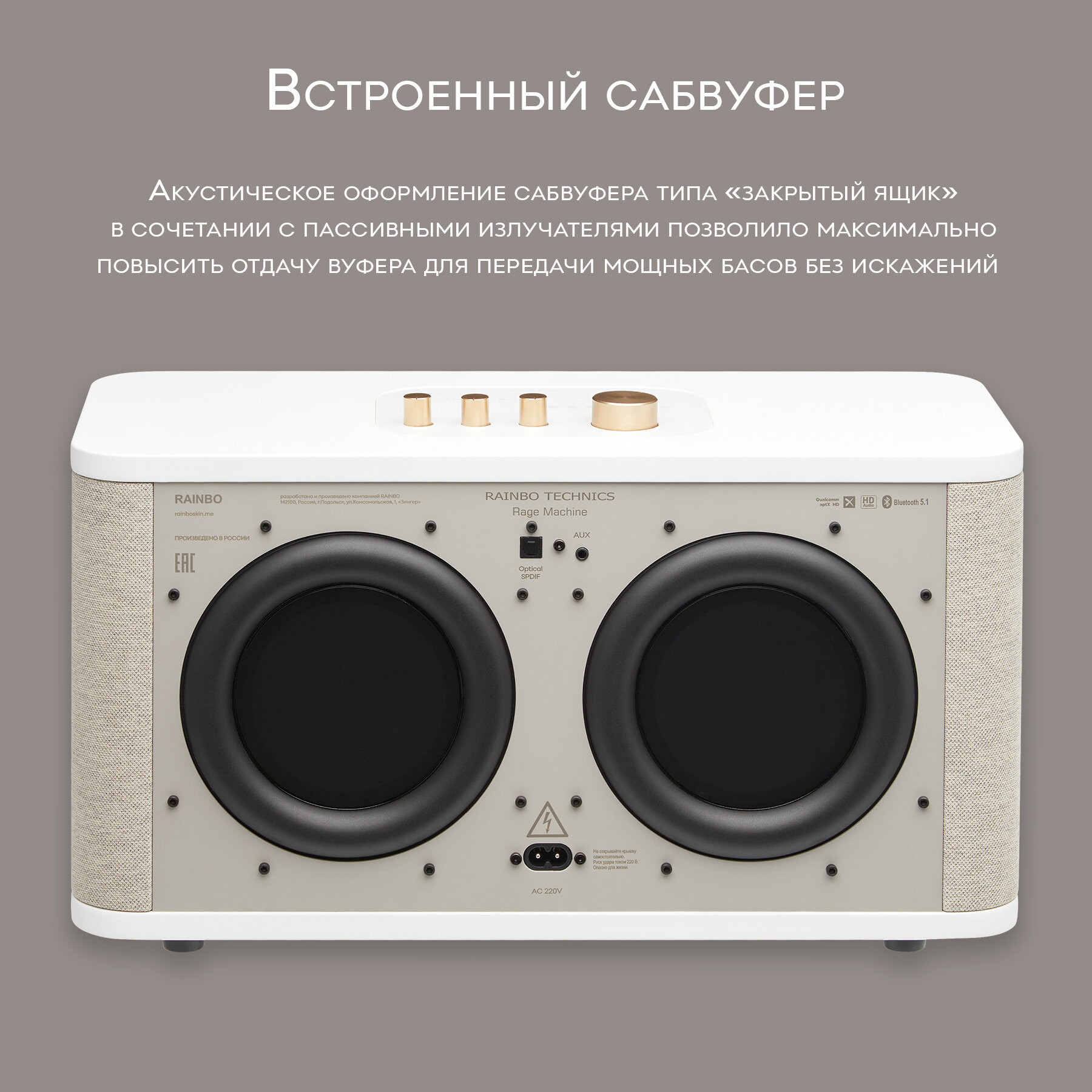 Купить Hi-Fi блютуз колонка музыкальный центр RAINBO TECHNICS Satisfaction White