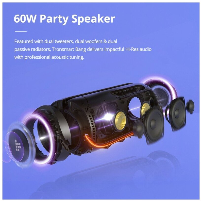 Ниже Вы можете прочитать отзывы на Tronsmart BANG 60Вт Портативная беспроводная колонка, RGB-подсветка, мощные басы, ознакомится с подробными характеристиками, посмотреть интересные обзоры и фотографии на Tronsmart BANG 60Вт Портативная беспроводная колонка, RGB-подсветка, мощные басы.