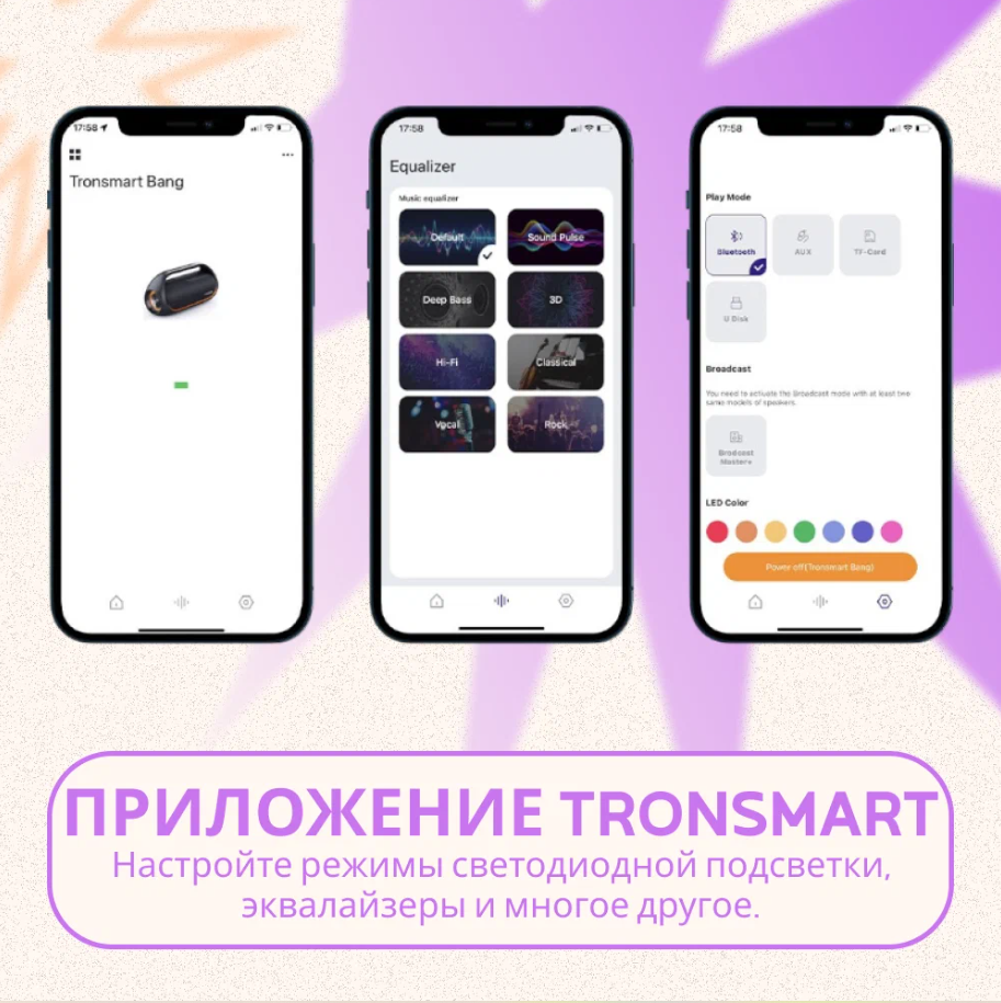 Tronsmart BANG 60Вт Портативная беспроводная колонка, RGB-подсветка, мощные басы интересное: