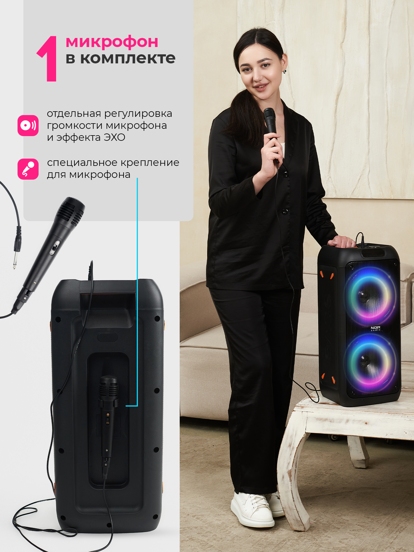Купить Беспроводная портативная колонка NOIR-audio MAX-100 с проводным микрофоном, караоке, блютуз и светомузыкой
