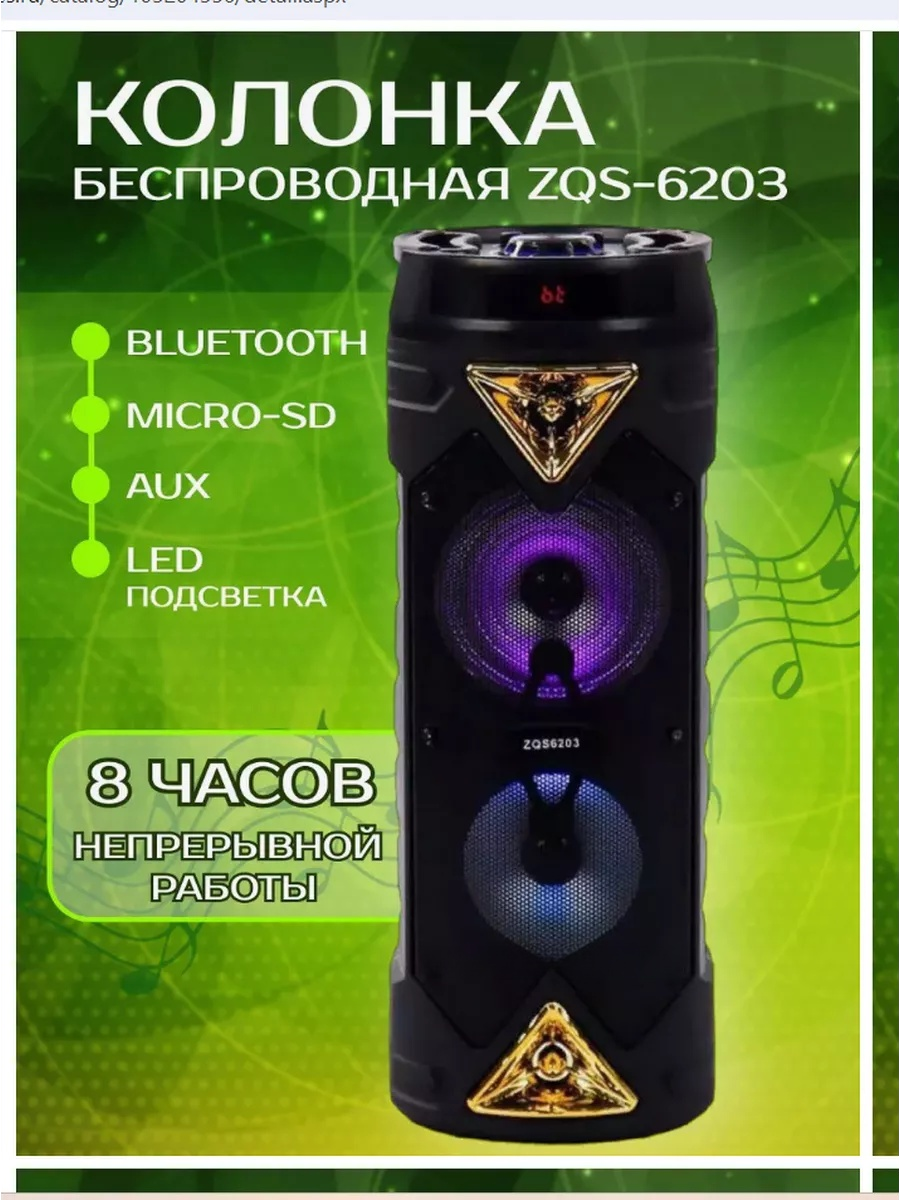 Колонка беспроводная "SPEAKER" ZQS 6203 bluetooth радио / Колонка беспроводная аккумулятор 4500 mAh 30 Вт интересное: