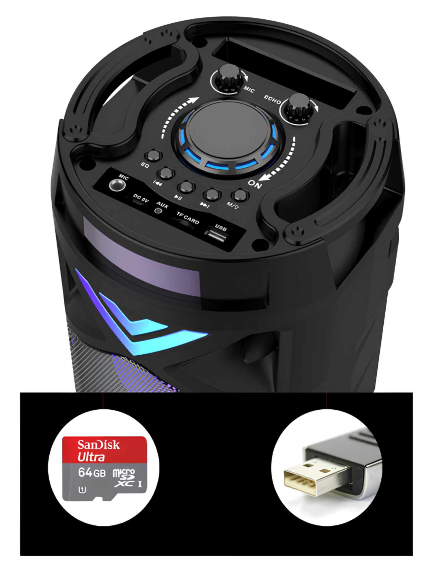 Колонка портативная беспроводная Party Time 6201, с подсветкой, на дачу и домой, с караоке, с радио, 60 см, черная интересное: