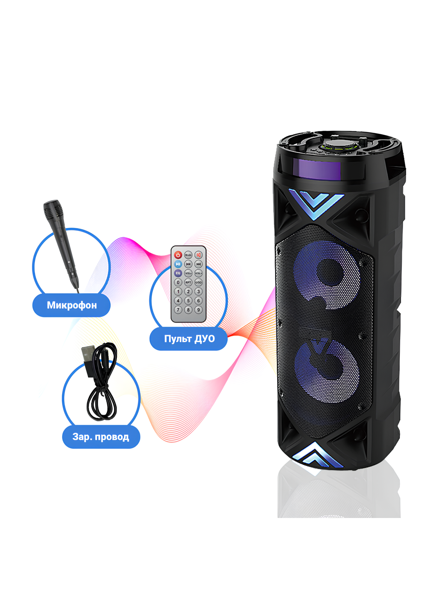 Купить Колонка портативная беспроводная Party Time 6201, с подсветкой, на дачу и домой, с караоке, с радио, 60 см, черная
