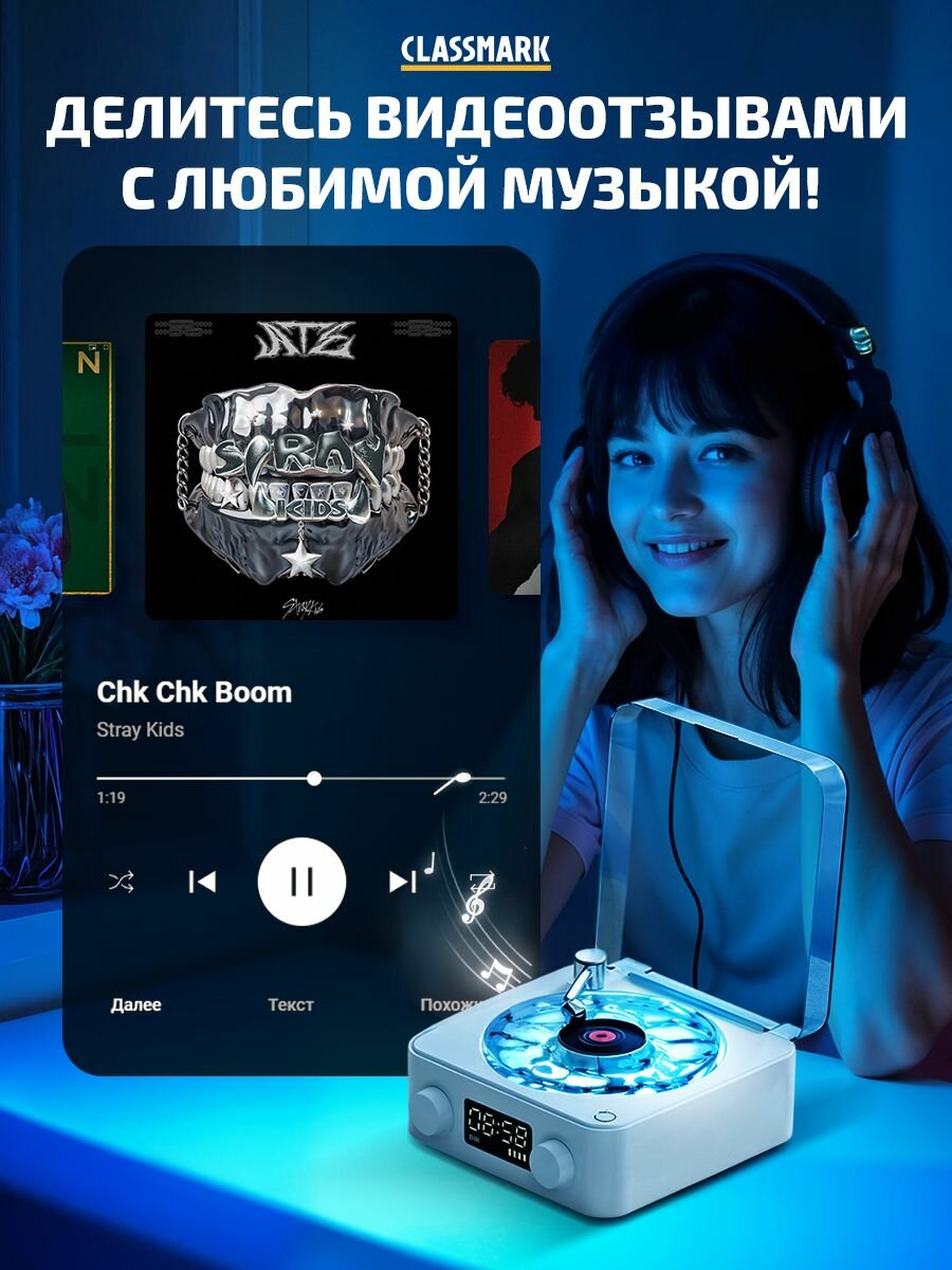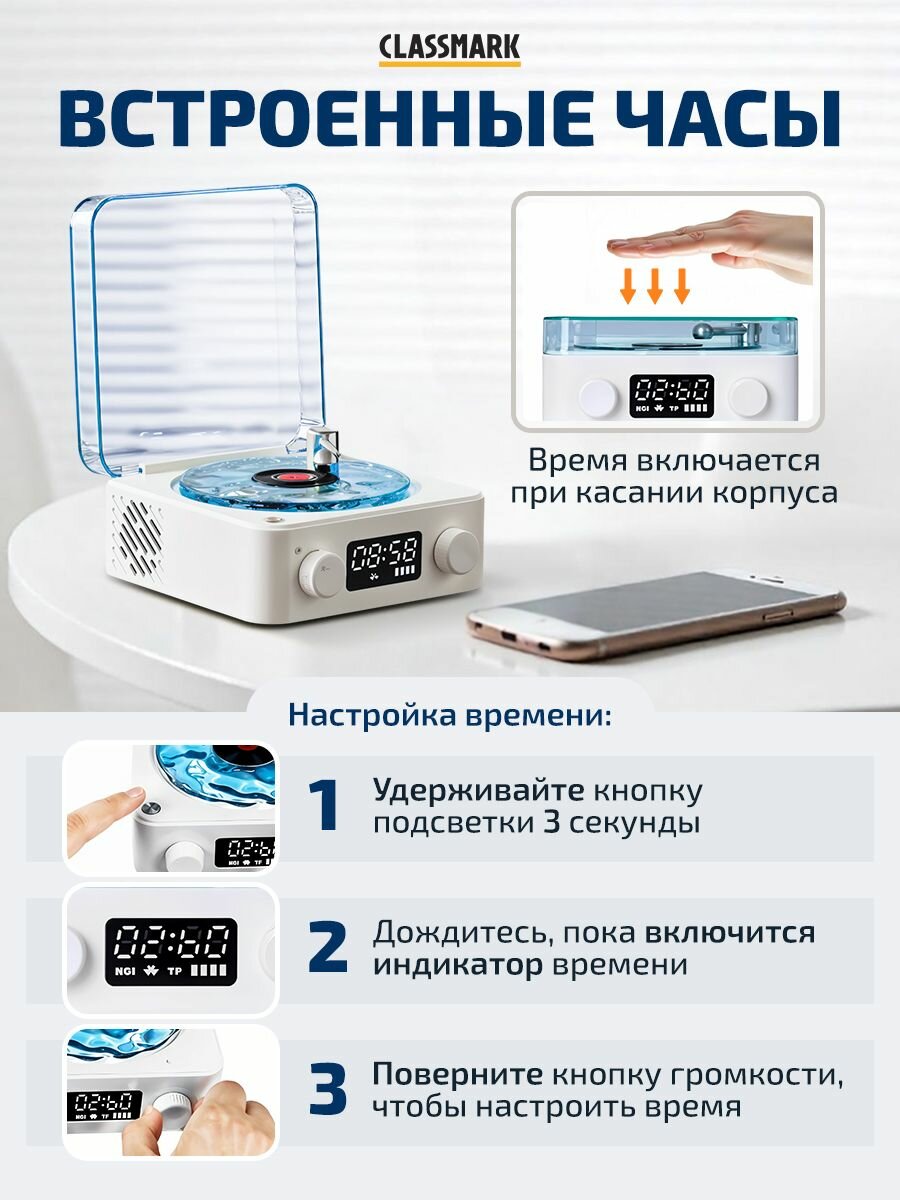 Колонка CLASSMARK, Bluetooth, световые эффекты, время работы 6ч интересное: