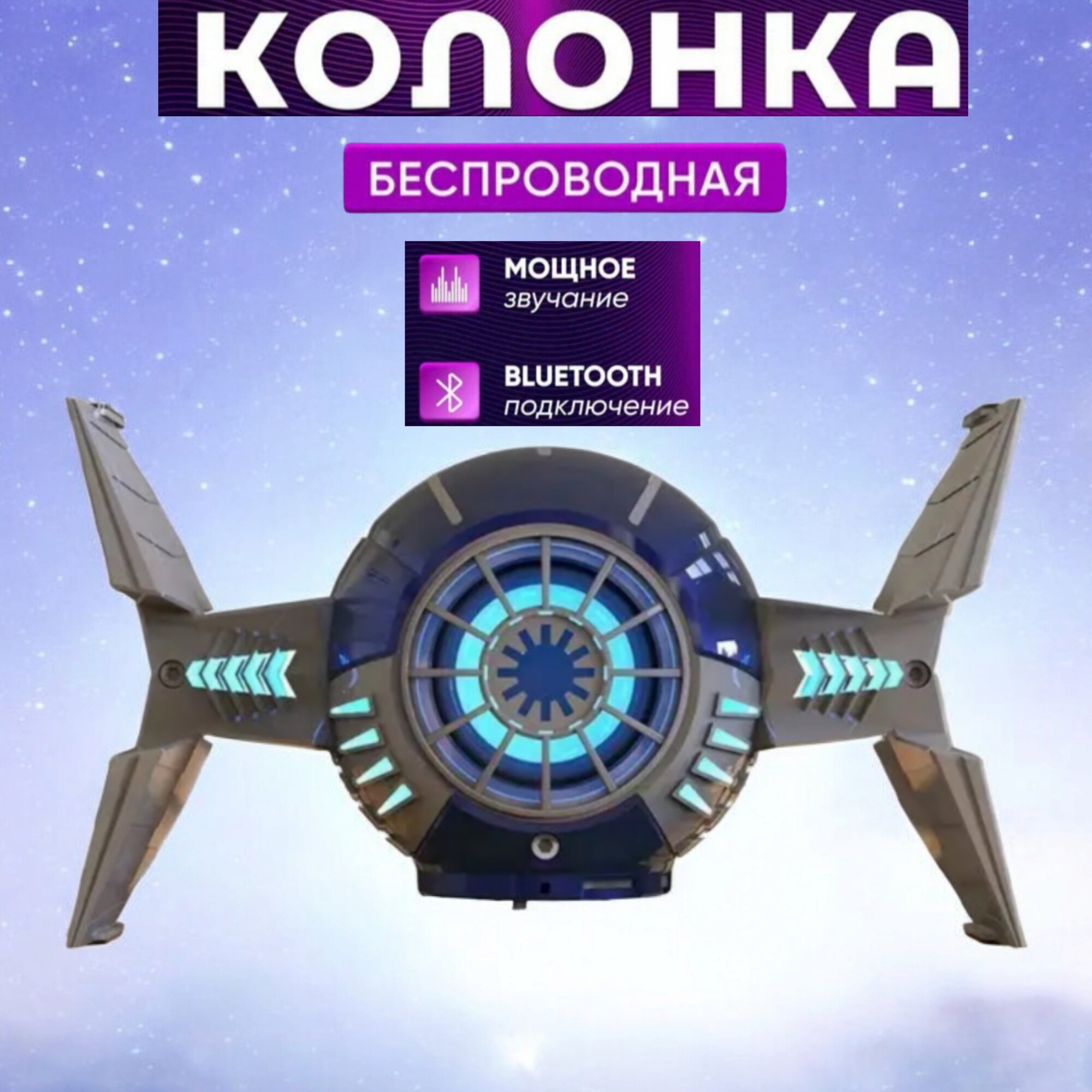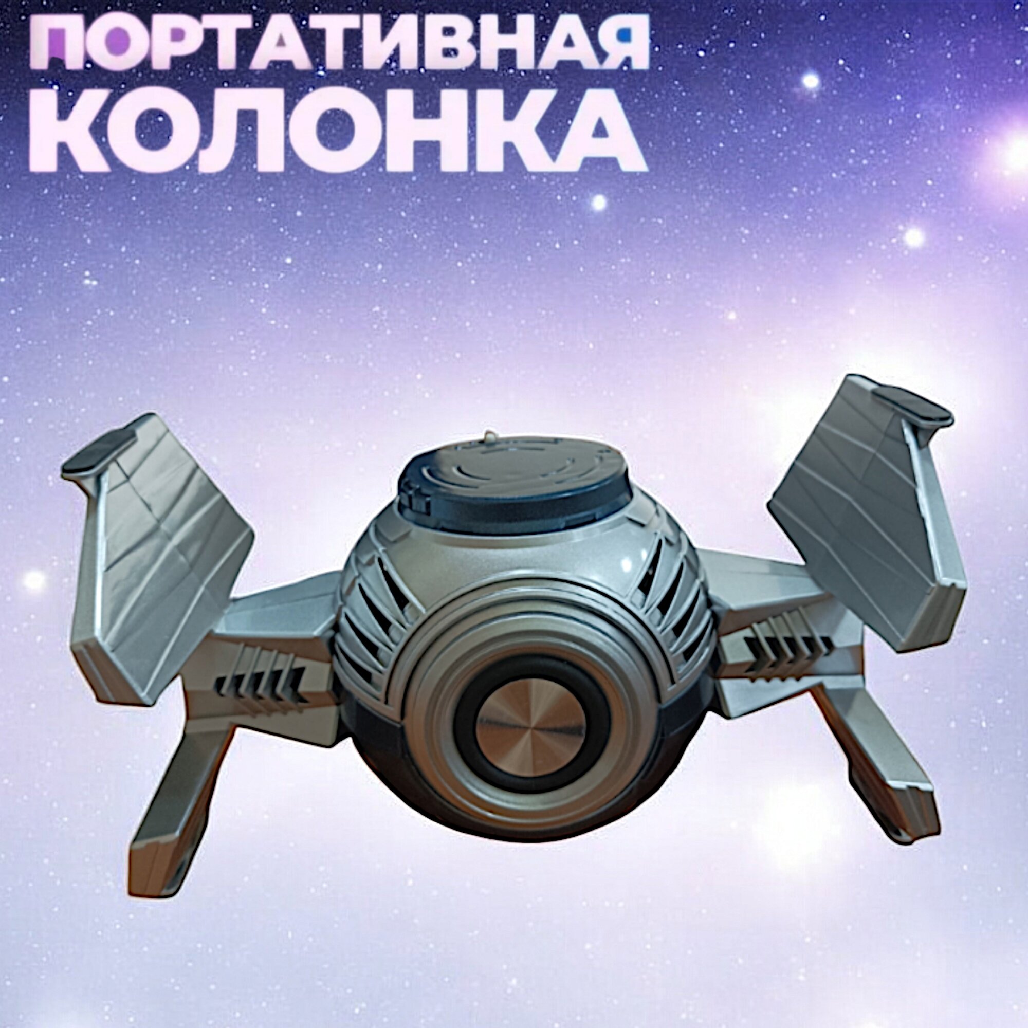 Колонка беспроводная музыкальная, Звездолет Bluetooth портативная, серебристая VITtovar интересное: