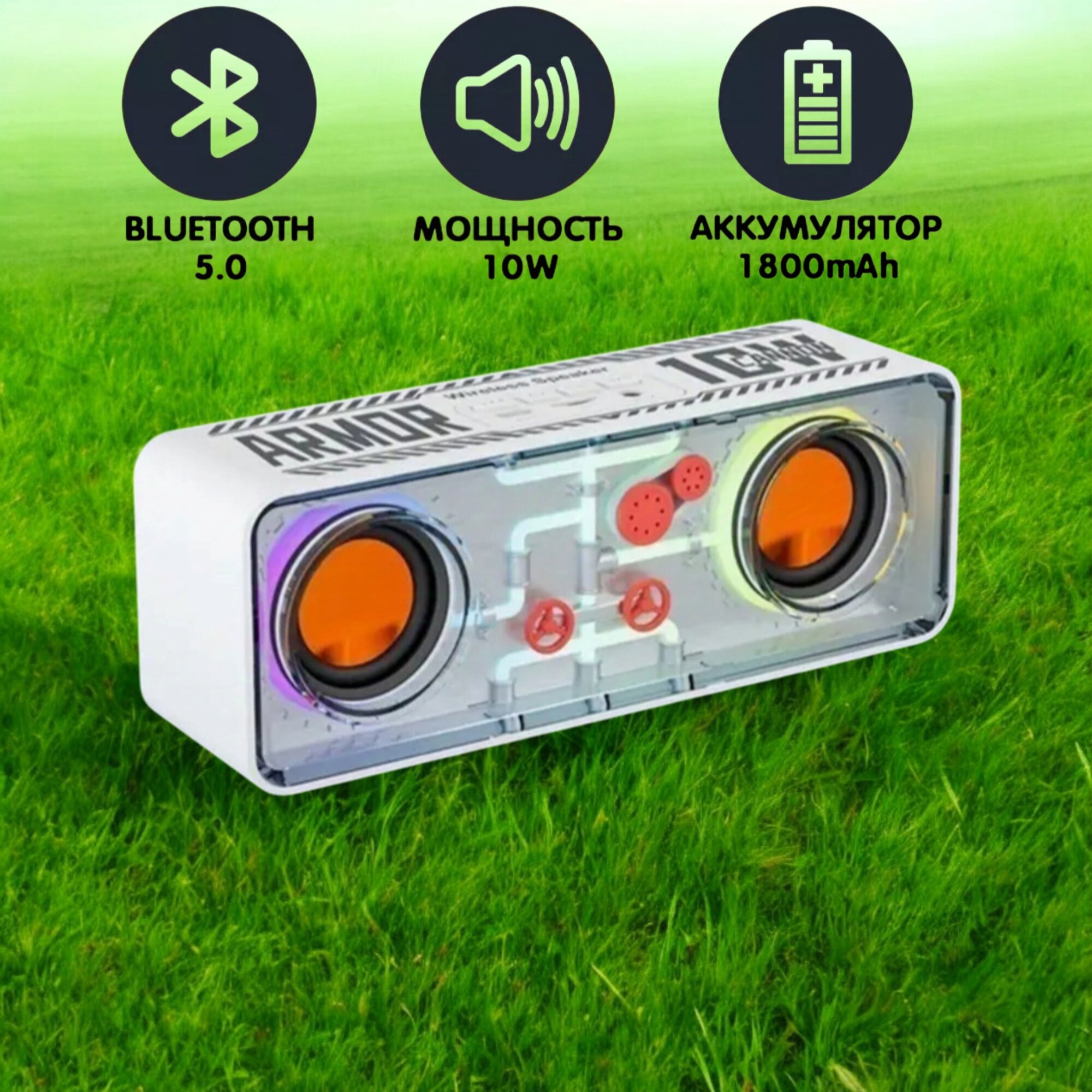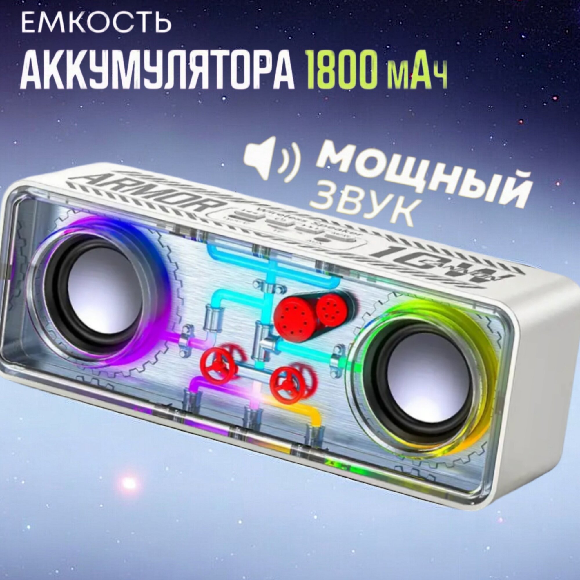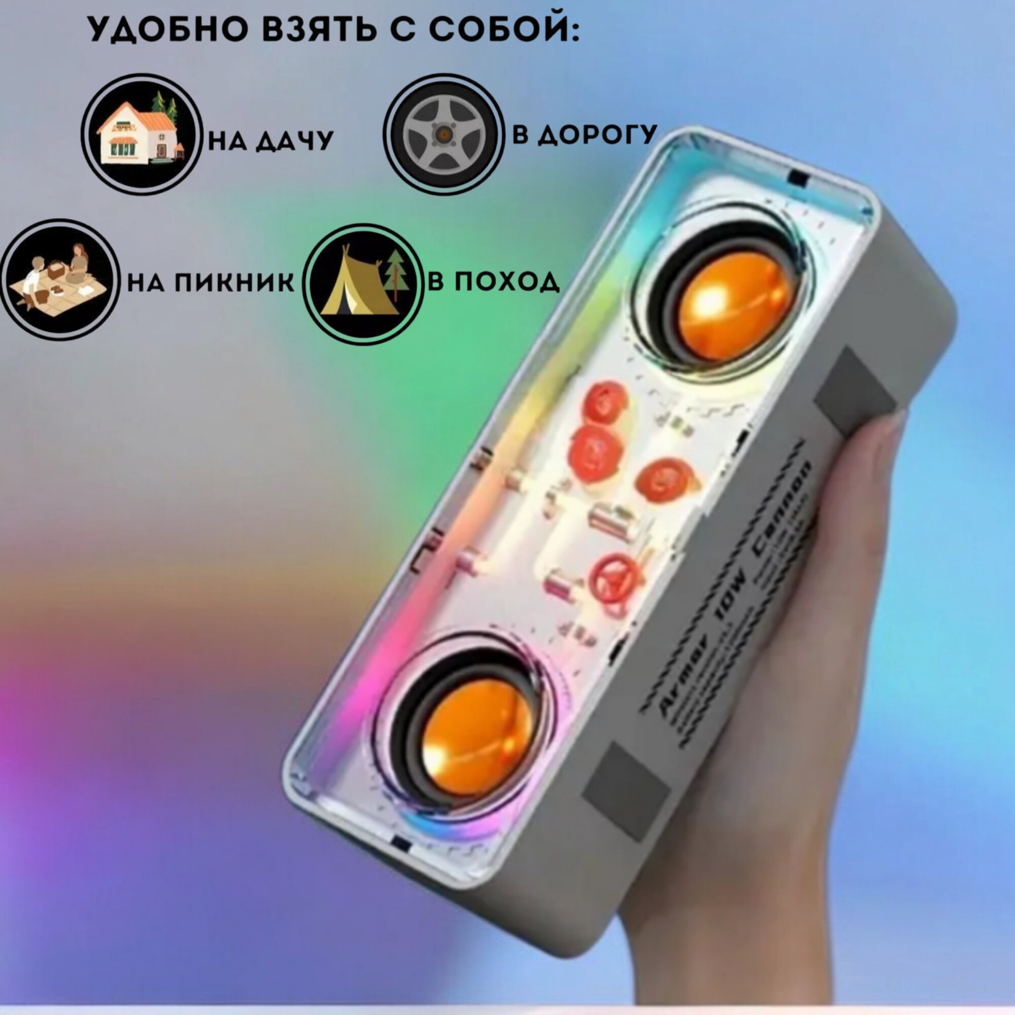 Колонка беспроводная музыкальная, Bluetooth портативная, LED подсветка, белая VITtovar интересное: