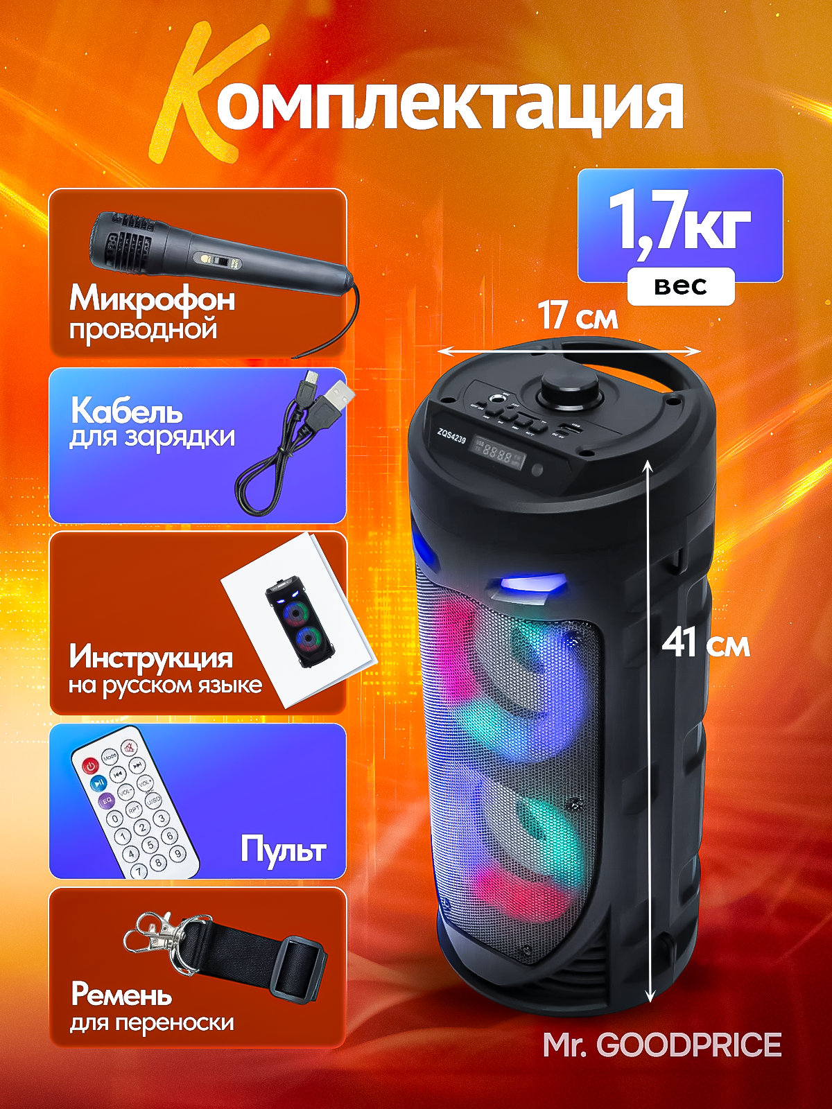 Колонка блютуз беспроводная, 16Вт, караоке, светомузыка, 40см интересное: