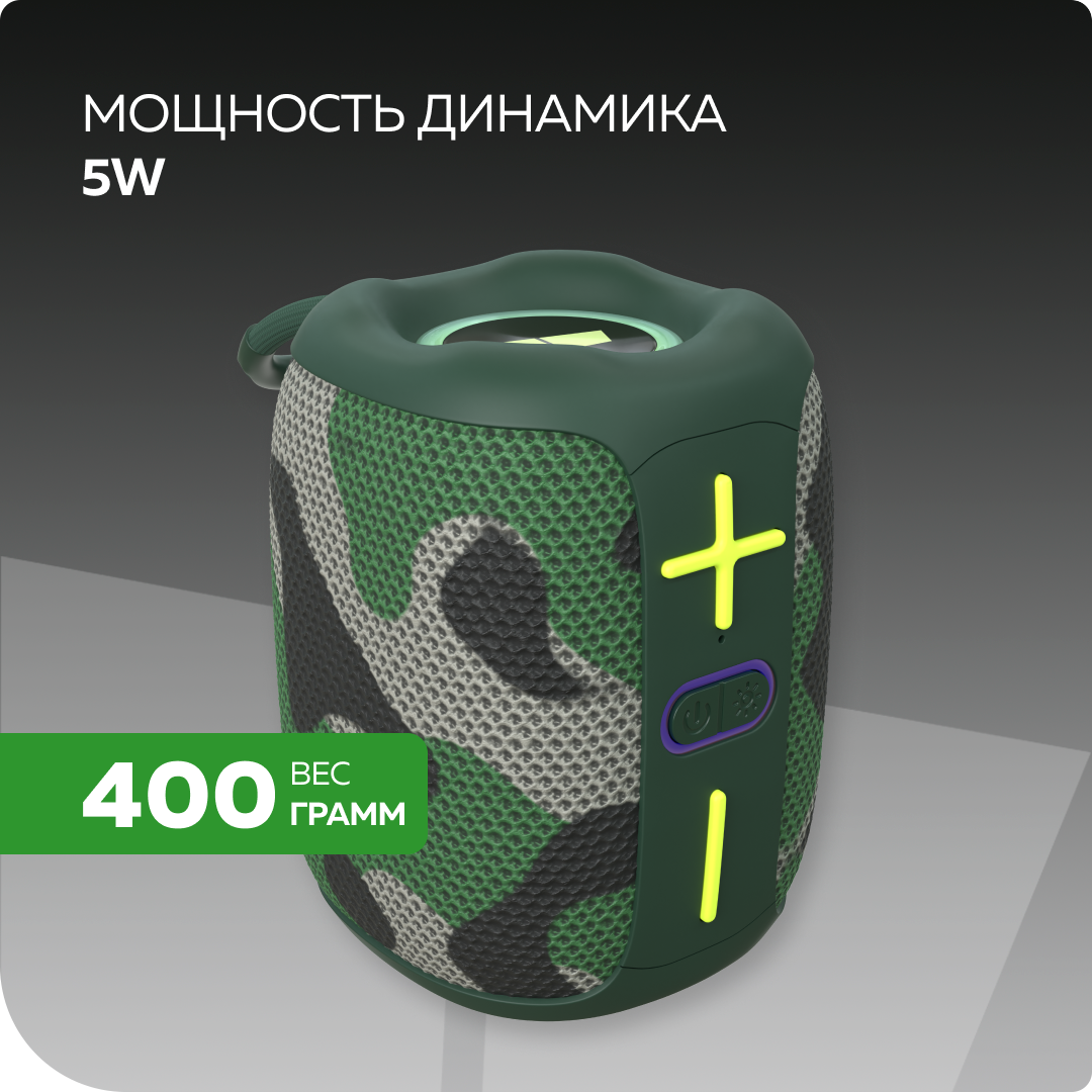 Беспроводная колонка 8W с функцией громкой связи и подсветкой More choice BS33 хаки интересное: