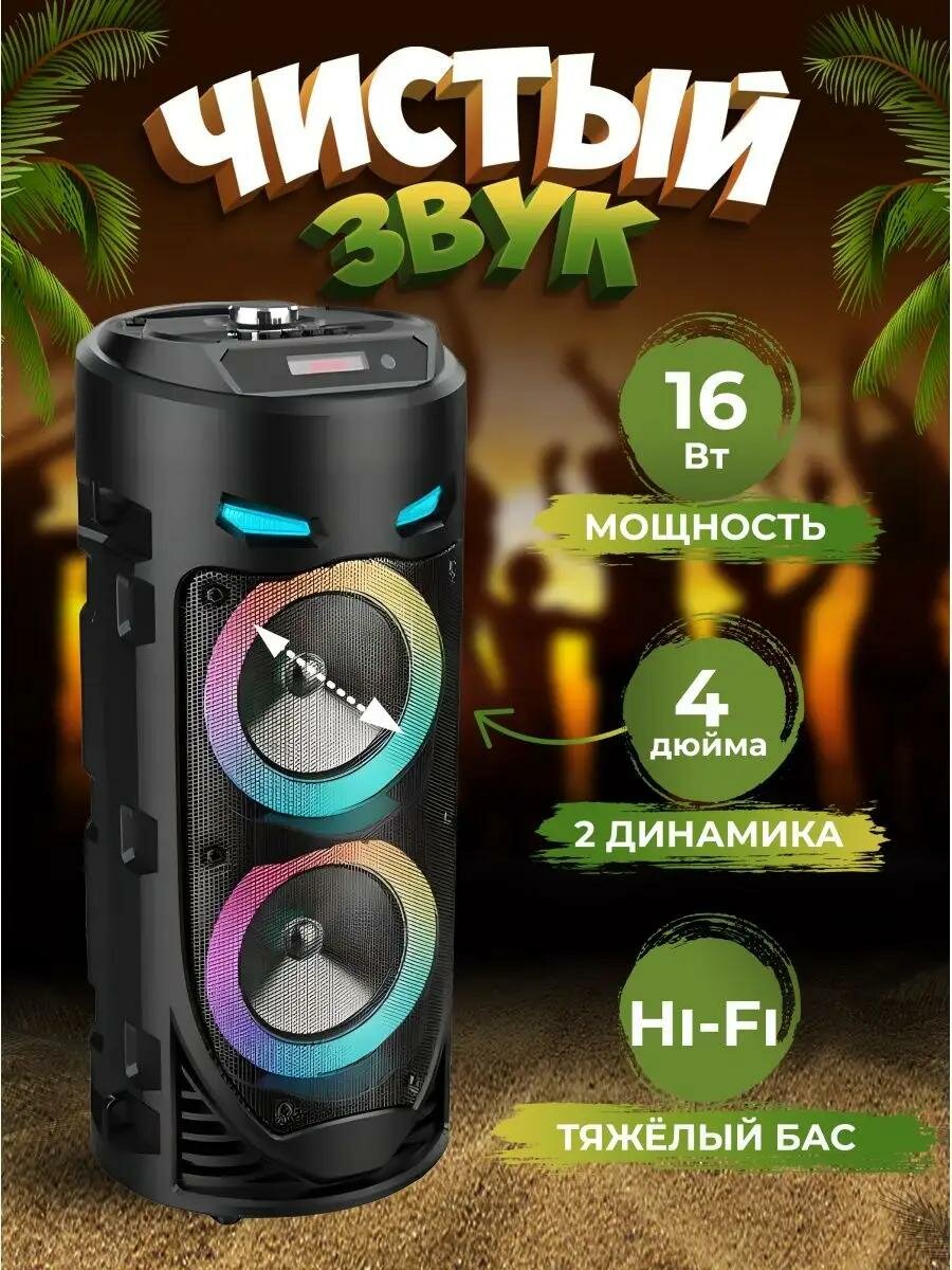 СохранитьКолонка 4239 Bluetooth, Портативная 16Вт с 2 динамиками, Kараоке, Микрофон, USB, AUX, micro SD, 1800 мАч, Черный интересное: