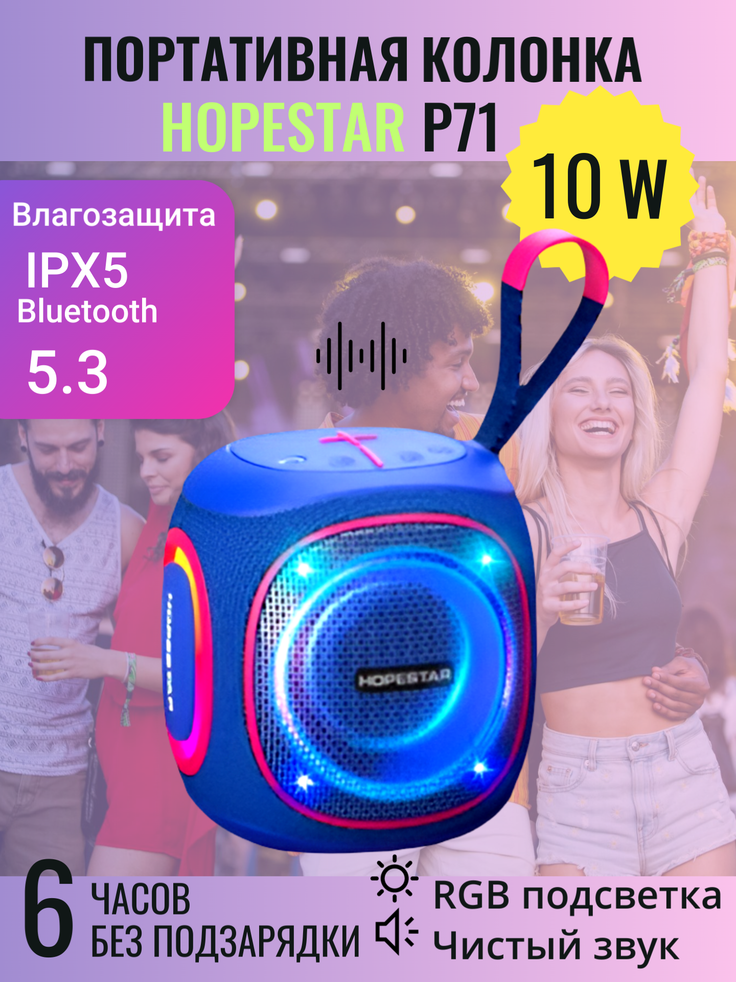 Портативная беспроводная Bluetooth колонка HOPESTAR P71, 10Вт, синий интересное:
