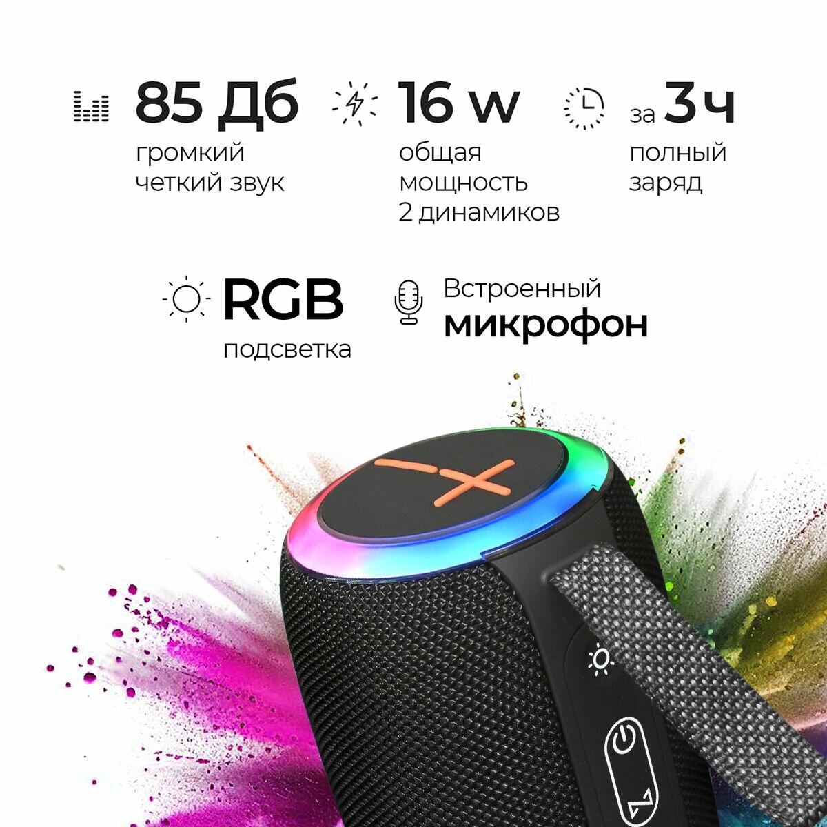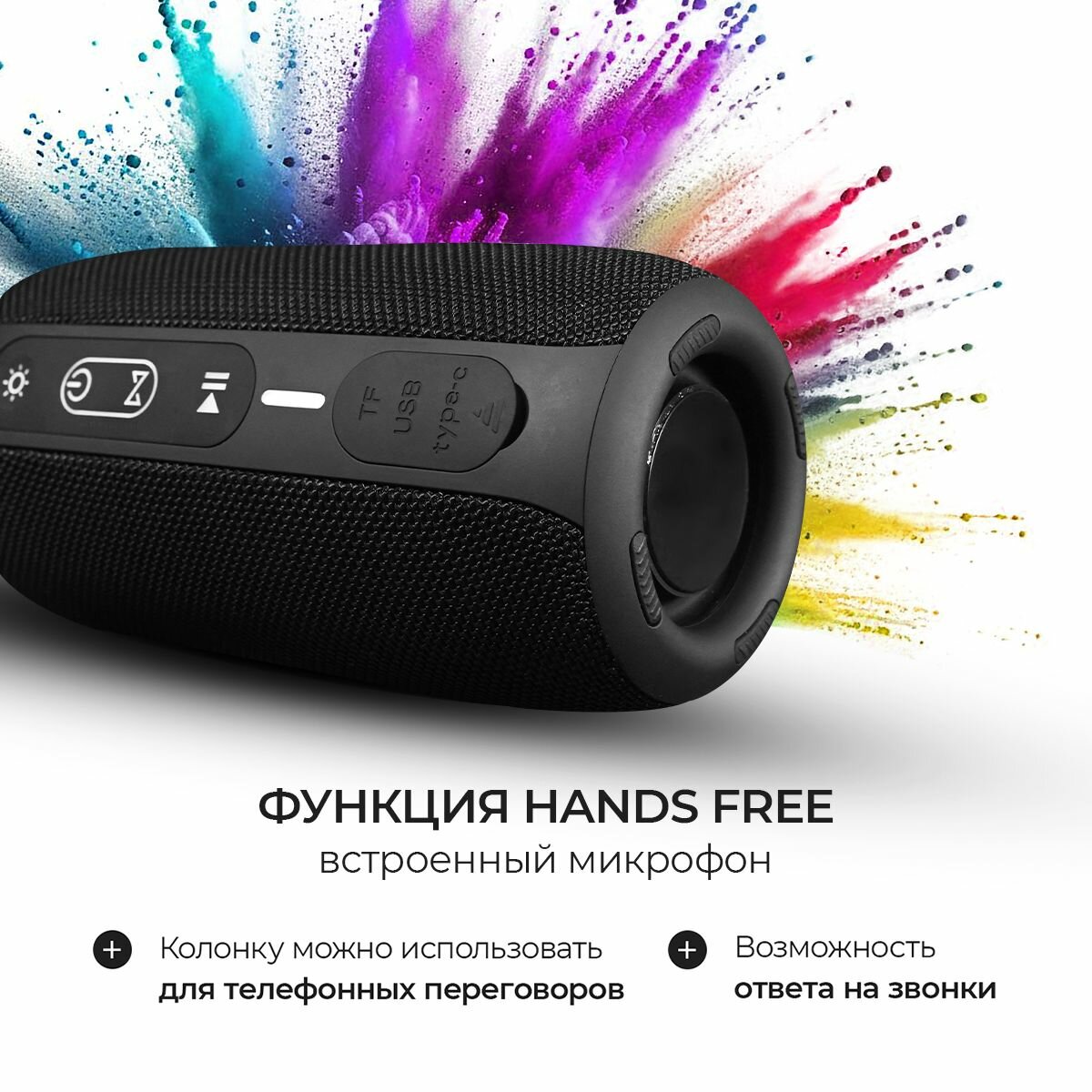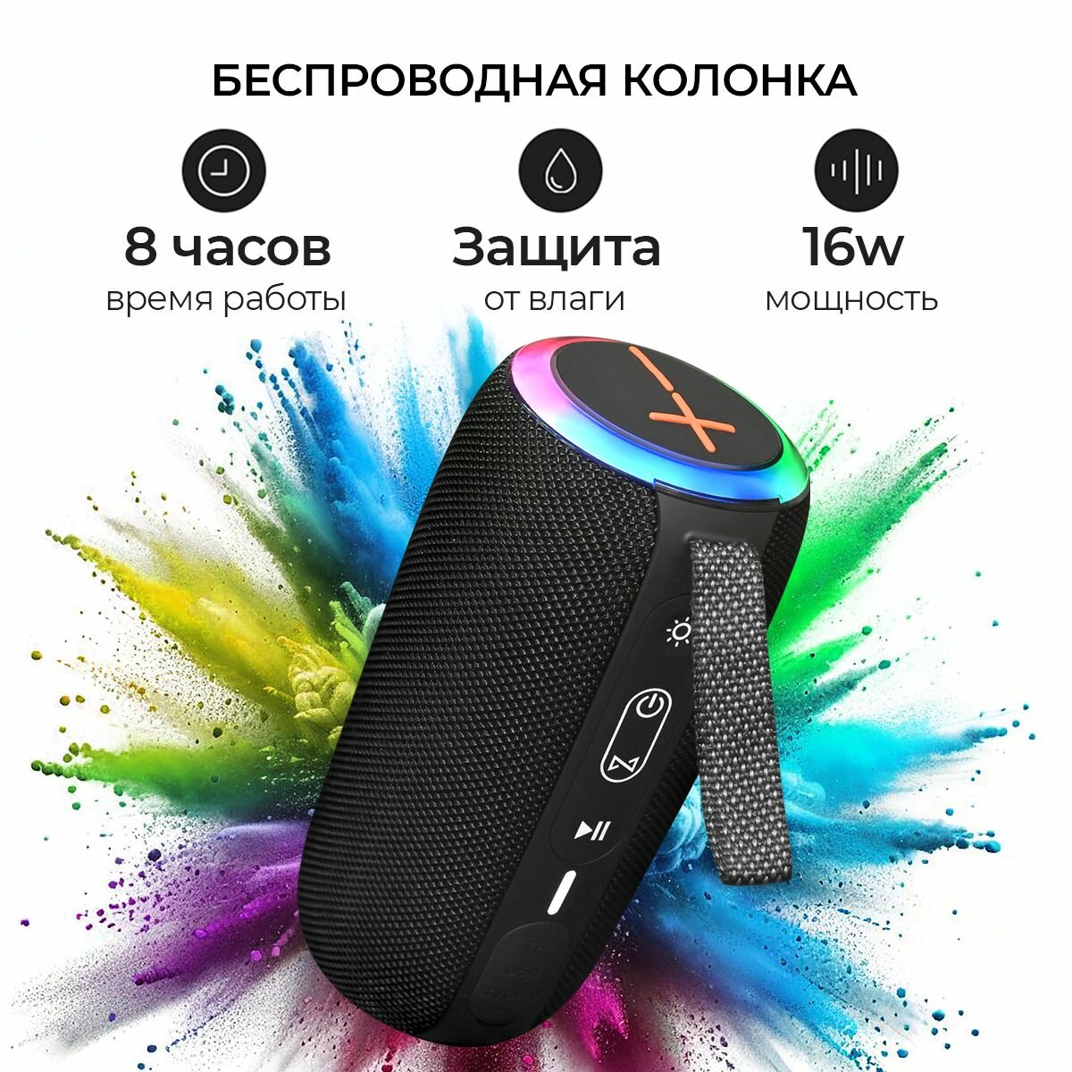 Колонка беспроводная портативная Bluetooth, музыкальная колонка Блютуз, 16W, TF, MicroSD, USB, TWS, черная интересное: