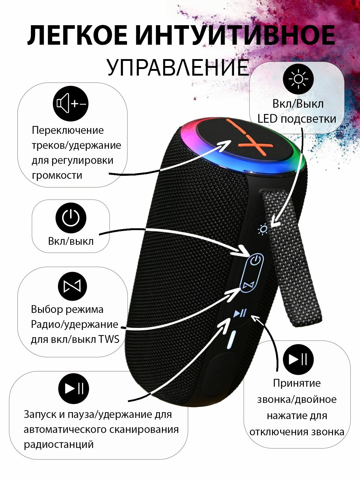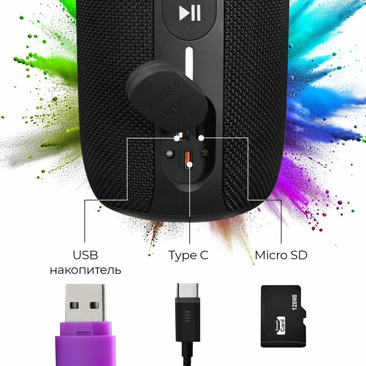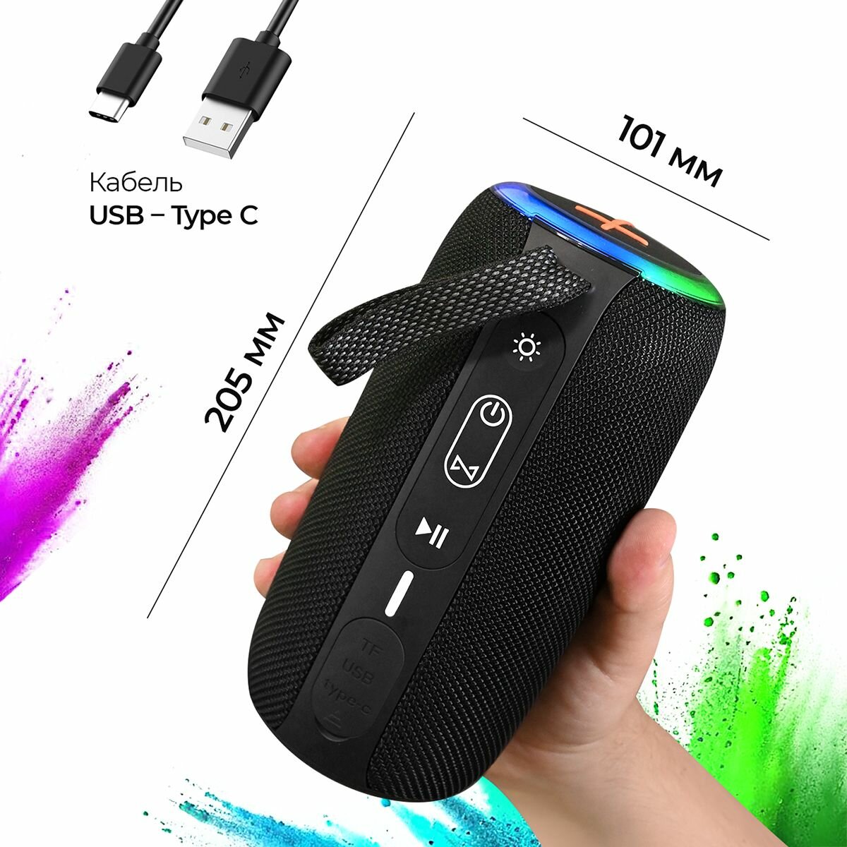 Колонка беспроводная портативная Bluetooth, музыкальная колонка Блютуз, 16W, TF, MicroSD, USB, TWS, черная интересное: