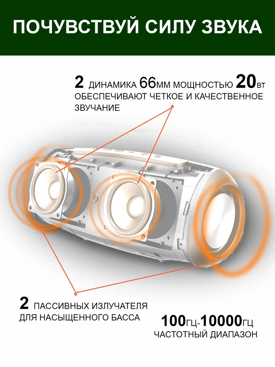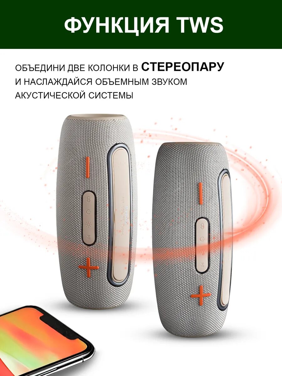 Колонка беспроводная портативная Блютуз, 20W, музыкальная колонка Bluetooth, LED-подсветка, TF, MicroSD, TWS, бежевая интересное: