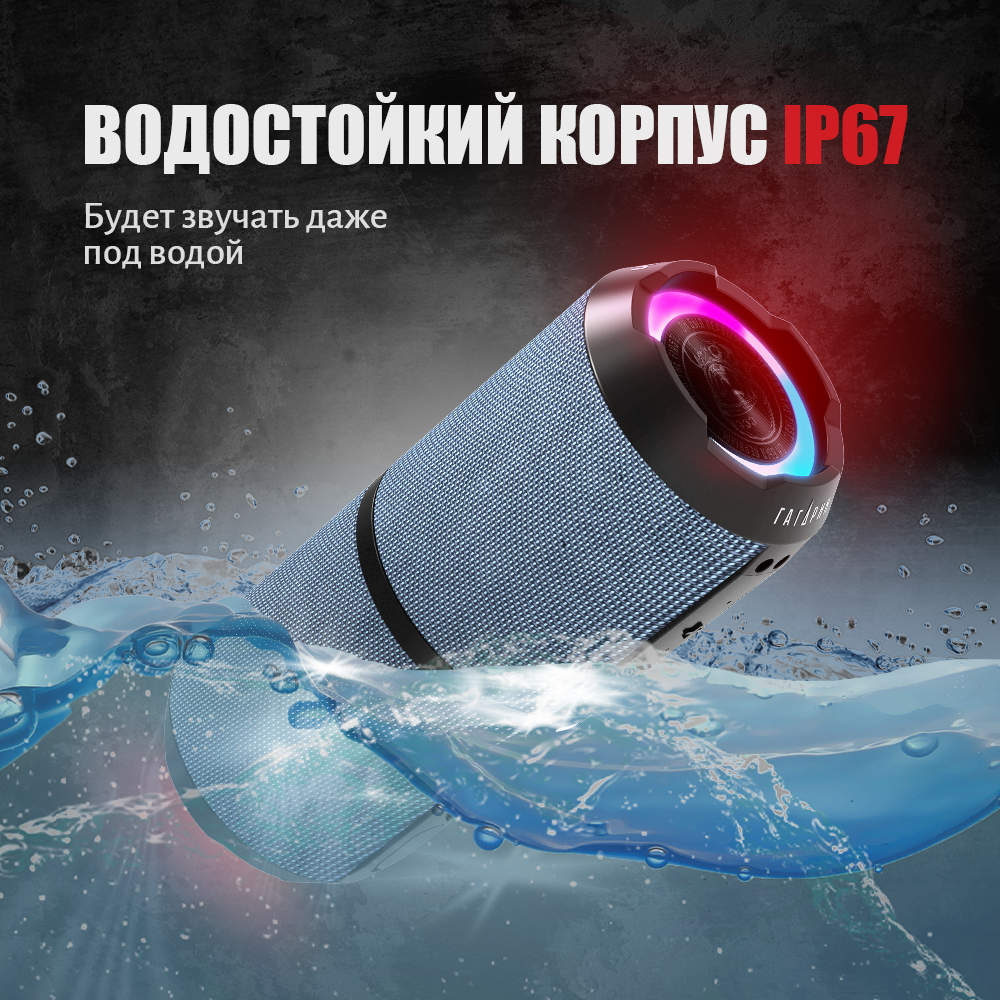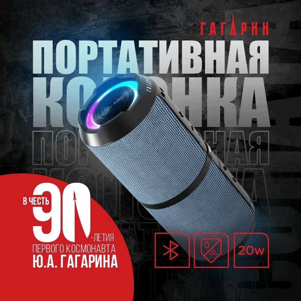 Купить Портативная Bluetooth колонка Урал Гагарин ГР-001 синяя, водонепроницаемая IP67, 20 Вт Мощность, TWS, FM-радио, беспроводная