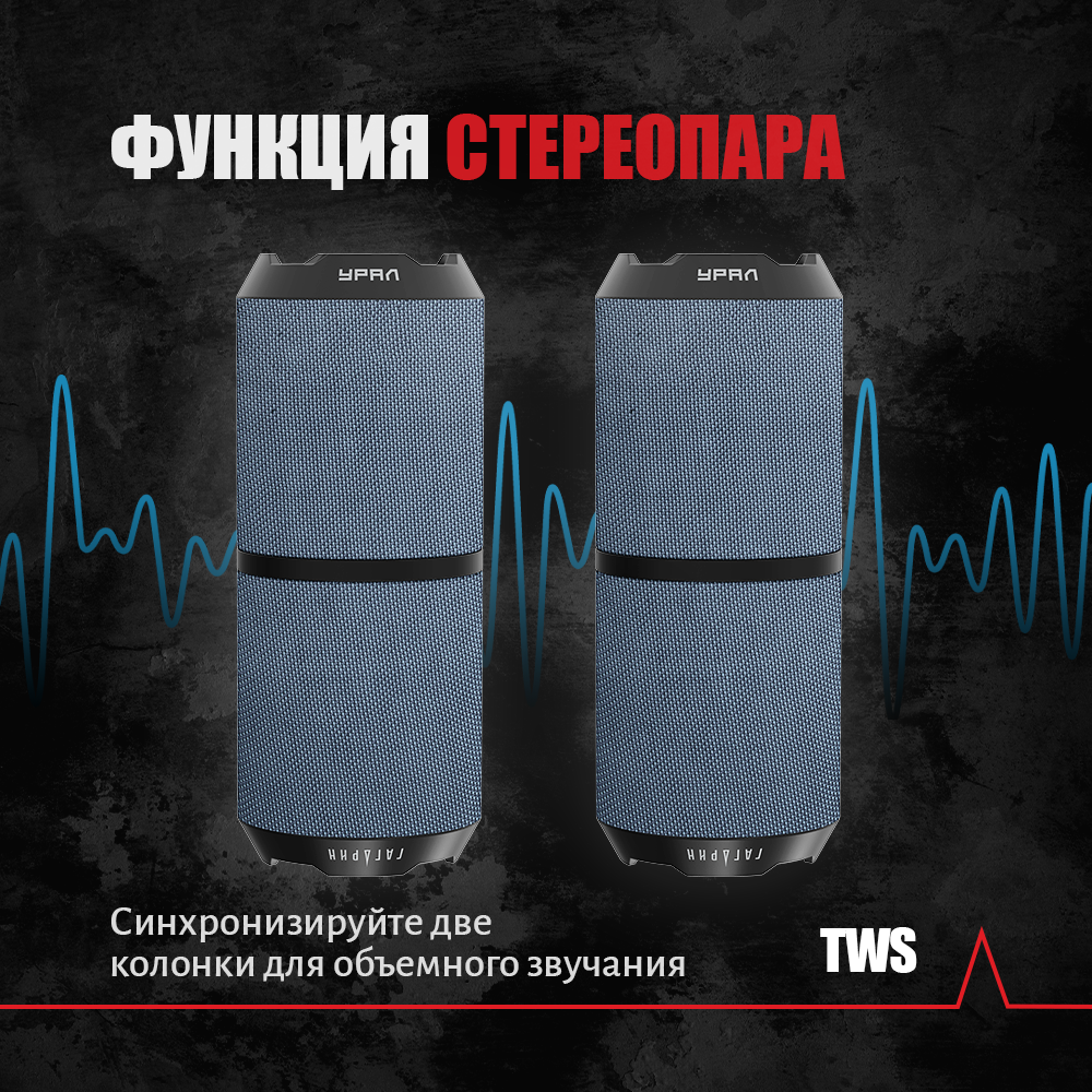 СохранитьПортативная Bluetooth колонка Урал Гагарин ГР-001 синяя, водонепроницаемая IP67, 20 Вт Мощность, TWS, FM-радио, беспроводная интересное: