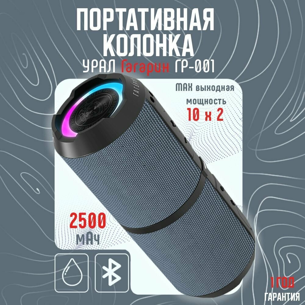 Портативная Bluetooth колонка Урал Гагарин ГР-001 серая, водонепроницаемая IP67, 20 Вт Мощность, TWS, FM-радио, беспроводная