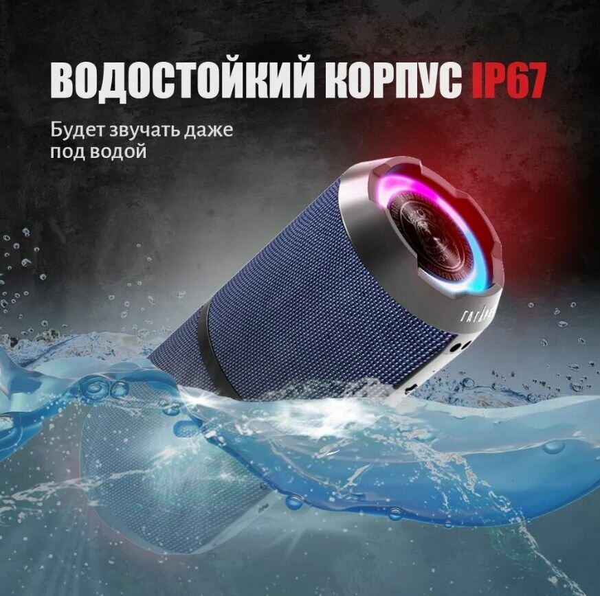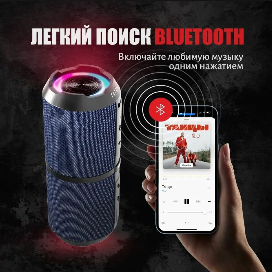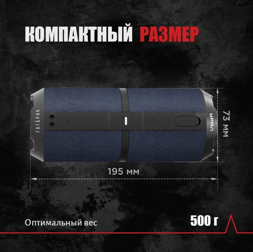 Портативная Bluetooth колонка Урал Гагарин ГР-001 синяя, водонепроницаемая IP67, 20 Вт Мощность, TWS, FM-радио, беспроводная